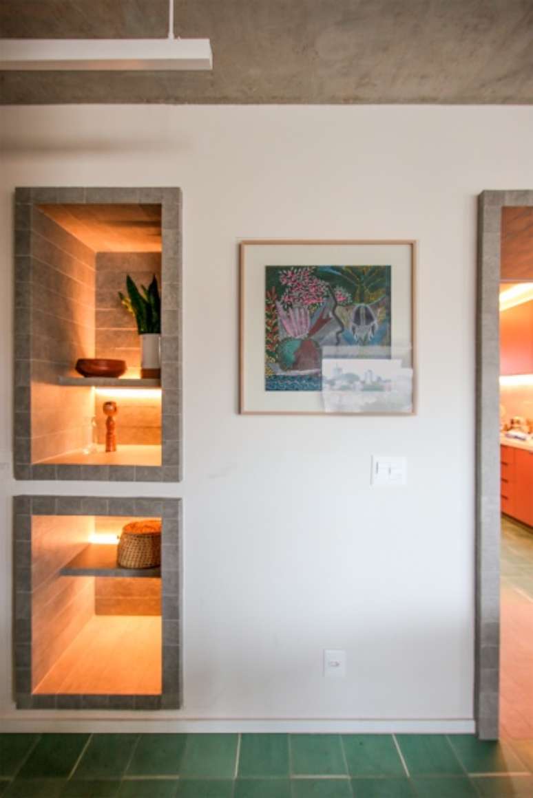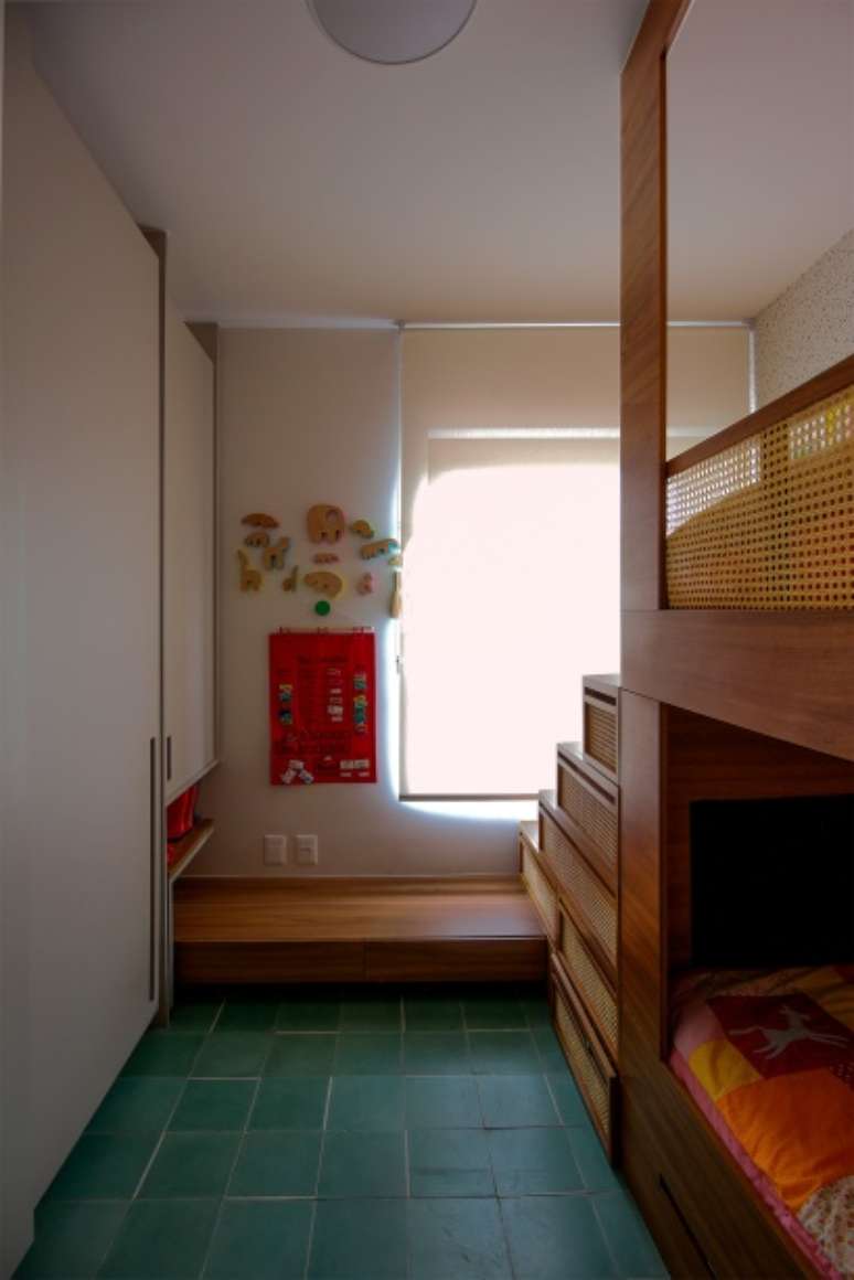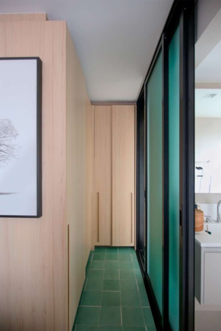 A fim de dar vida e criar contrastes de cores e texturas, este apartamento de 140 m², novo lar de um casal e suas duas filhas no bairro paulistano Vila Ipojuca, é marcado pela diversidade de revestimentos, sendo o ladrilho hidráulico o protagonista. Em tom verde, ele dá unidade visual por todas as áreas do projeto, assinado pelo Studio MEMM.