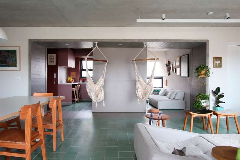 Ladrilho hidráulico cria unidade visual neste apartamento de 140m²