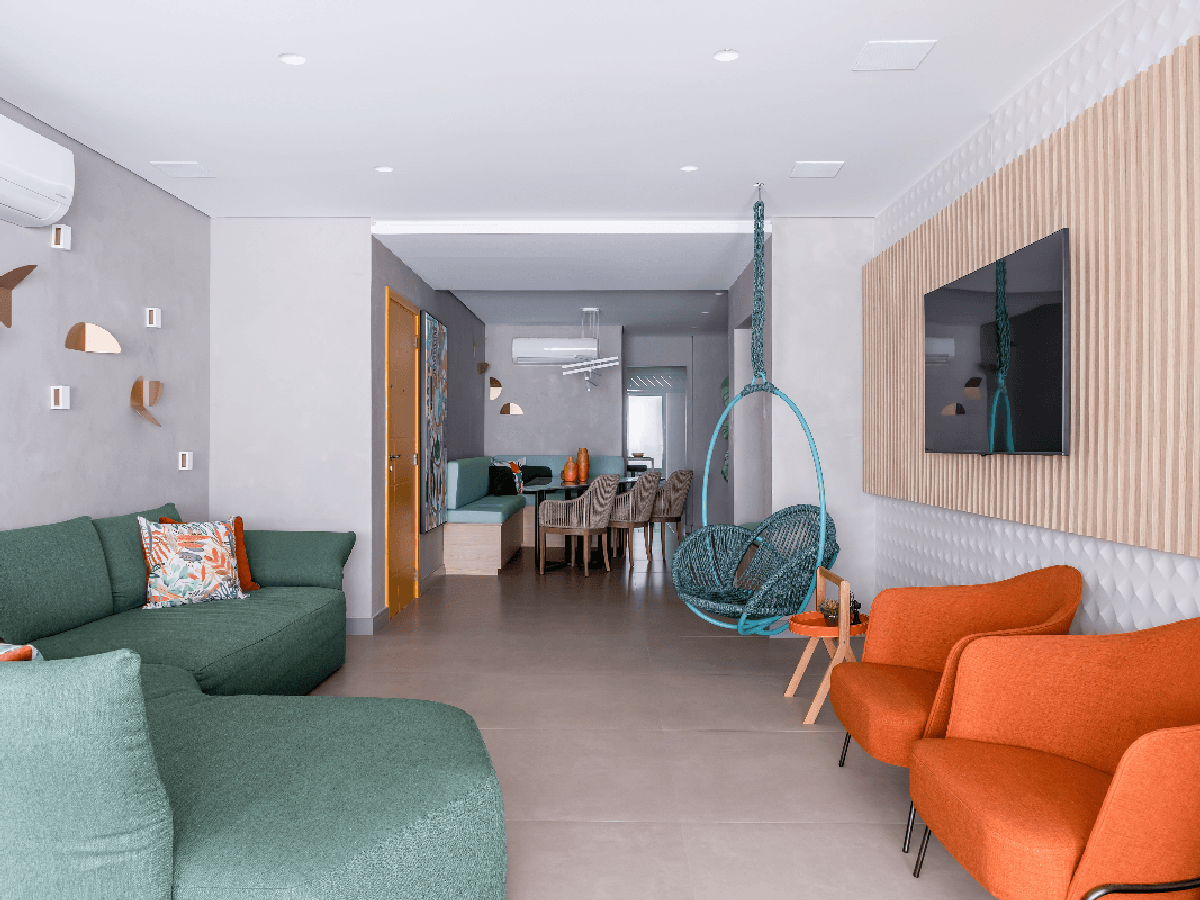 Nas áreas sociais, o laranja costuma reforçar as sensações de acolhimento e convivência, enquanto em espaços de trabalho ou estudo coopera para criatividade e disposição. Ainda assim, Cristiane Schiavoni destaca que a cor não está restrita ao uso em grandes proporções, já que, dependendo do projeto, pequenos elementos já são suficientes para inserir o tom de maneira requintada.