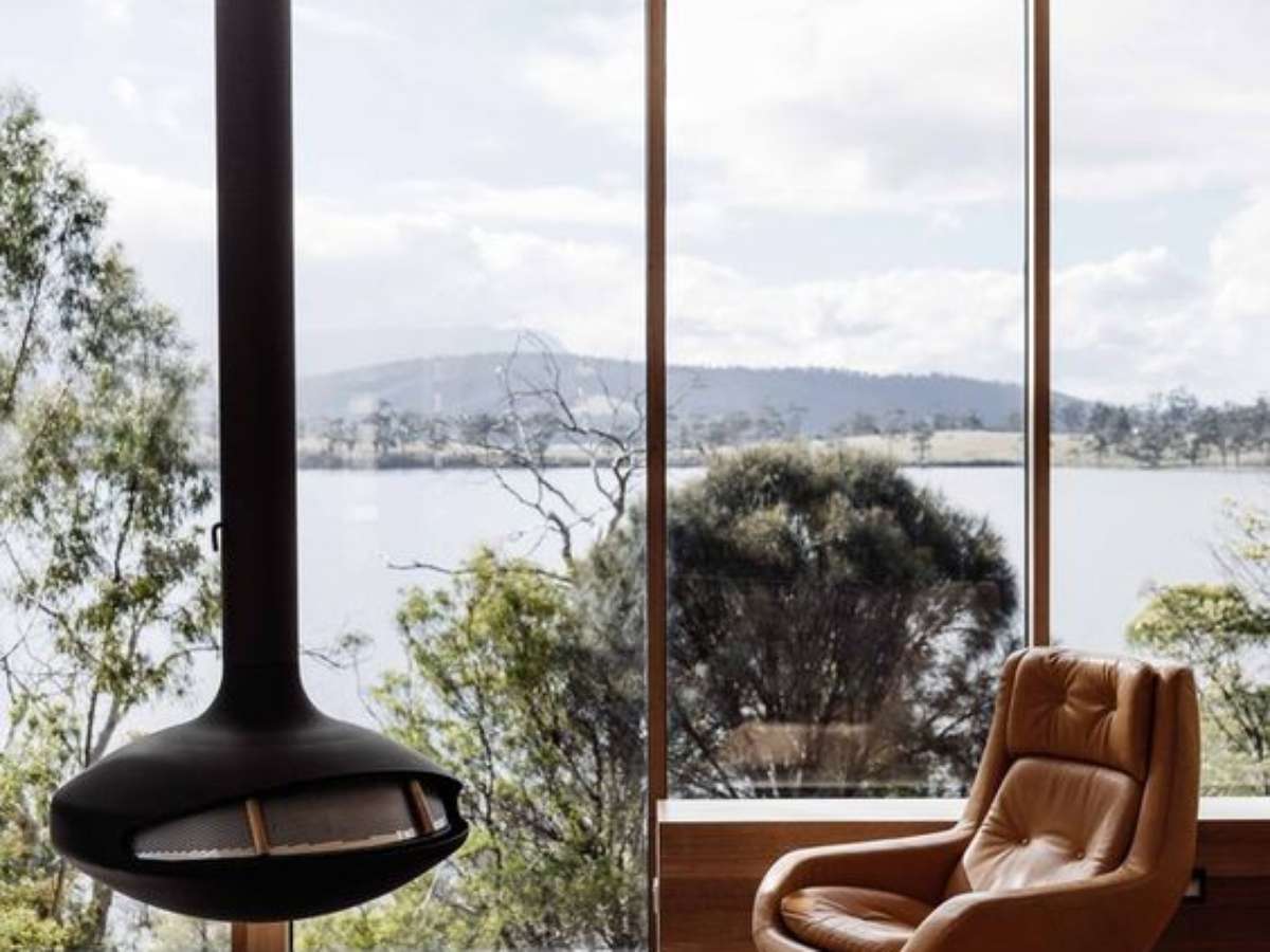30. Sala com lareira suspensa a lenha – Foto Dezeen