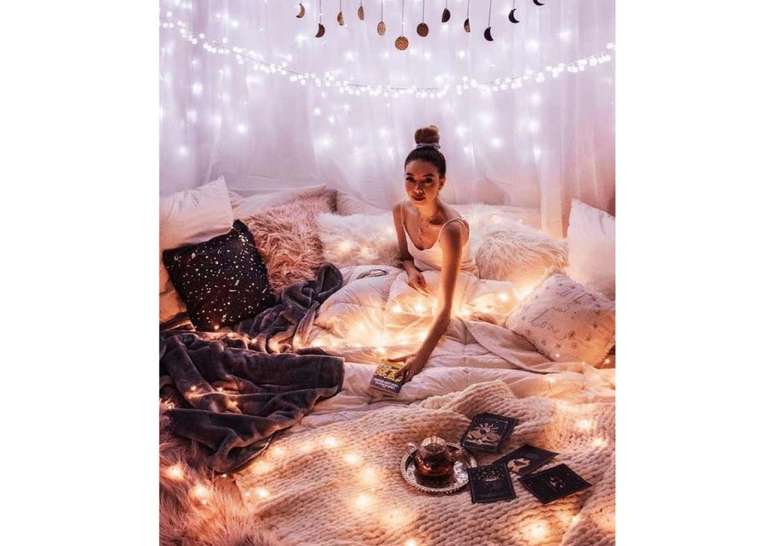 Estas luzinhas são perfeitas para o décor do quarto devido à sua funcionalidade. São flexíveis e finas, o que significa que podem ser colocadas onde as lâmpadas tradicionais não alcançam. Elas iluminam pouco, mas dão um ótimo efeito.
