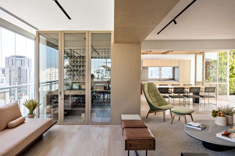 Madeira e vidro trazem leveza e luz para esta cobertura de 350m²