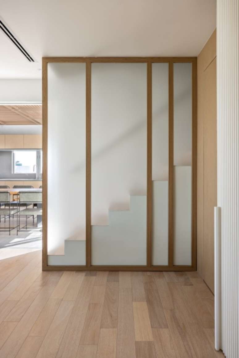O Studio AG, que assina o projeto, criou superfícies translúcidas e ritmadas de madeira e vidro para criar uma atmosfera leve e permeável