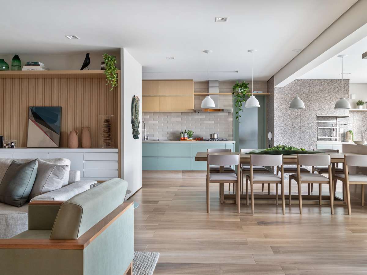 Madeira ripada e integração: confira o antes e o depois deste apê de 165m²