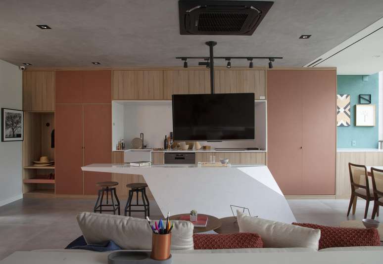 A grande jogada, na grande parte dos casos, é apostar em móveis multifuncionais - ou seja, aqueles que possuem mais de uma serventia. Nas cozinhas integradas, é bastante comum haver, além da mesa de jantar, um balcão.