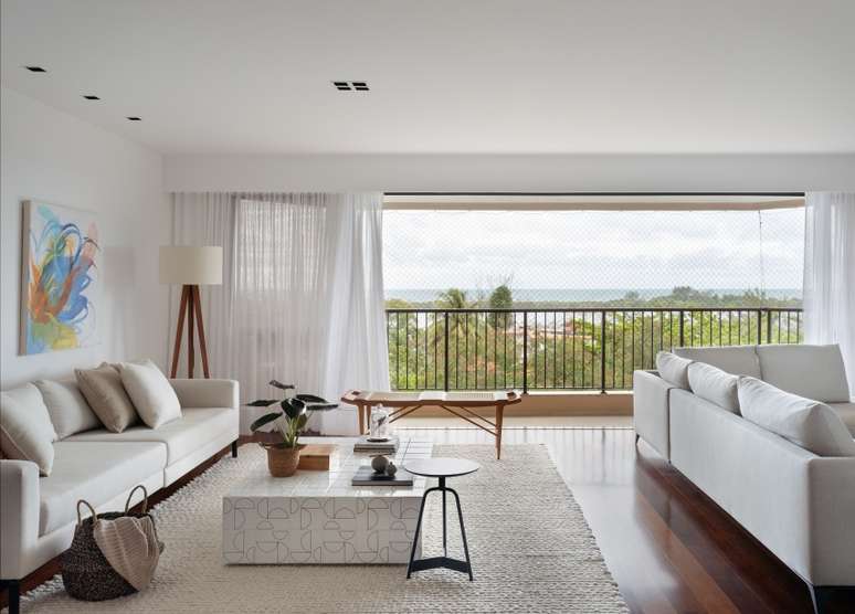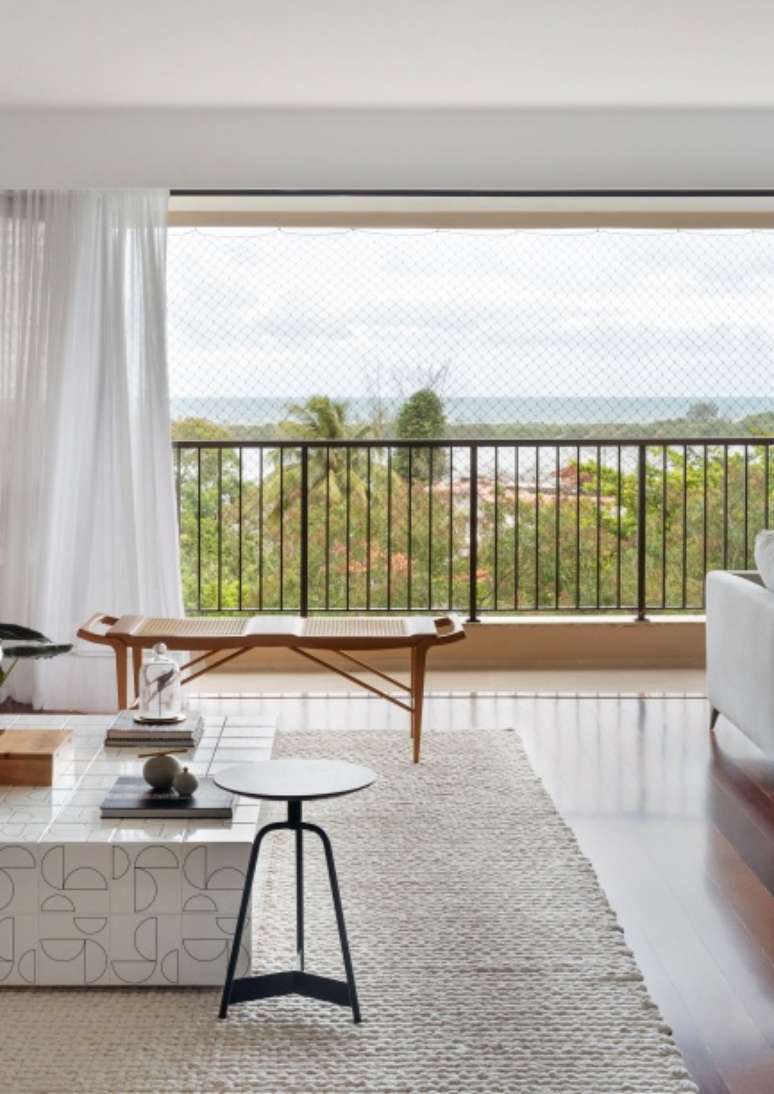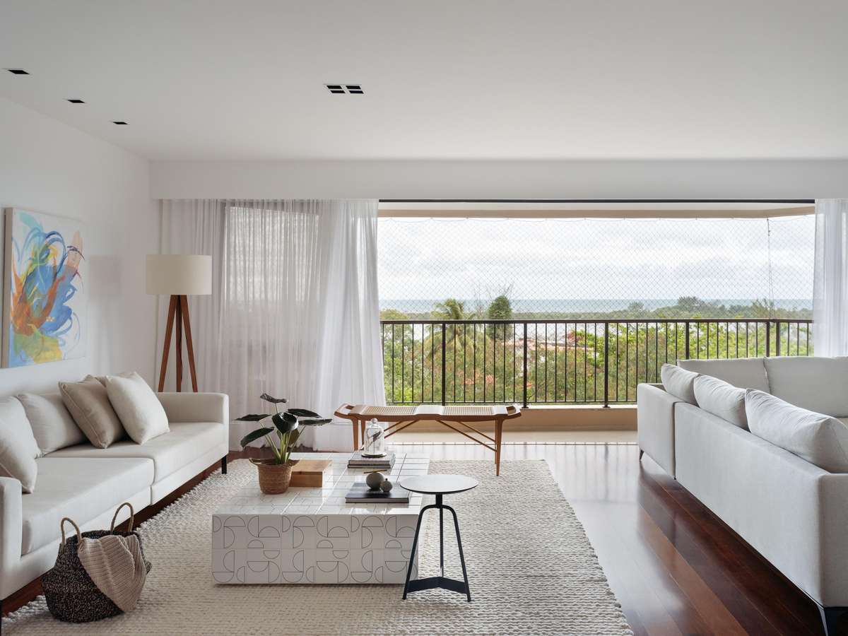 Materiais naturais e leveza marcam apê de 160m² com vista para a praia