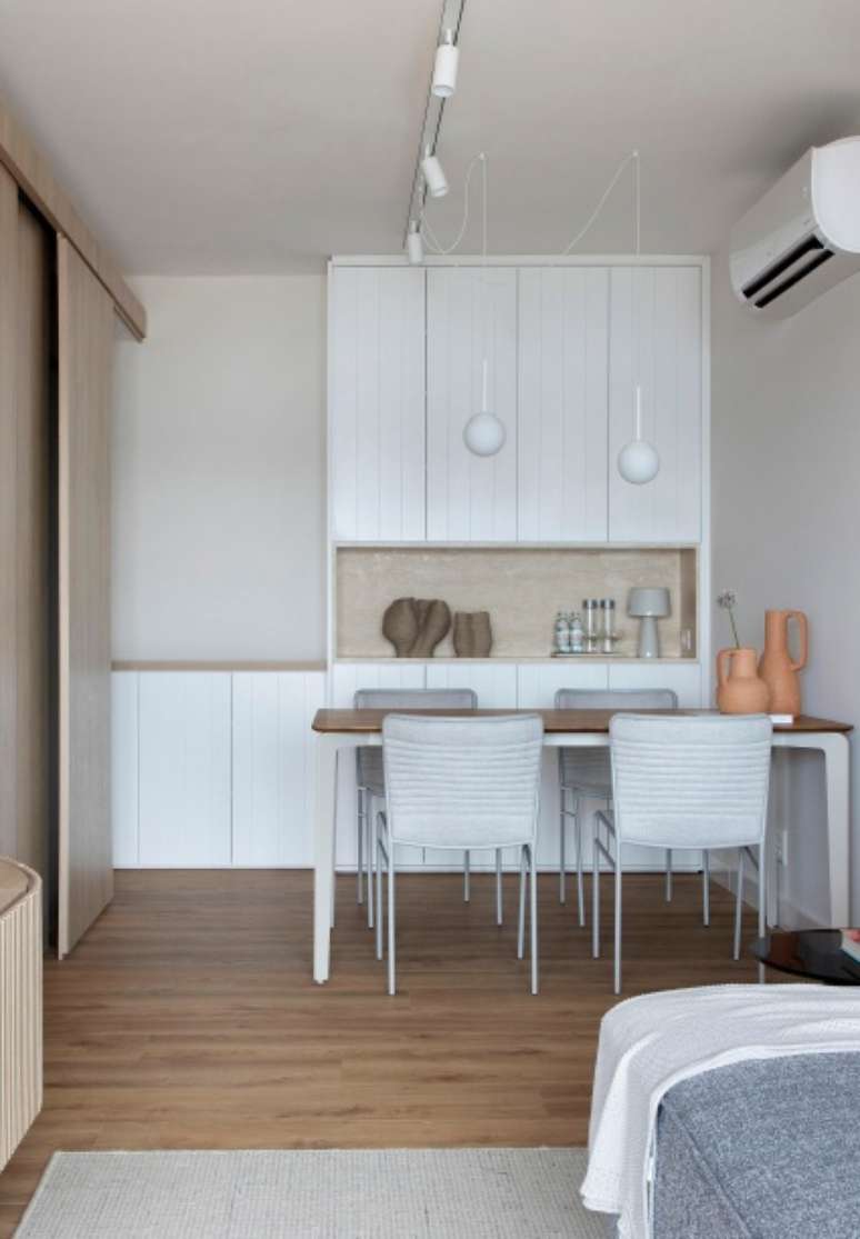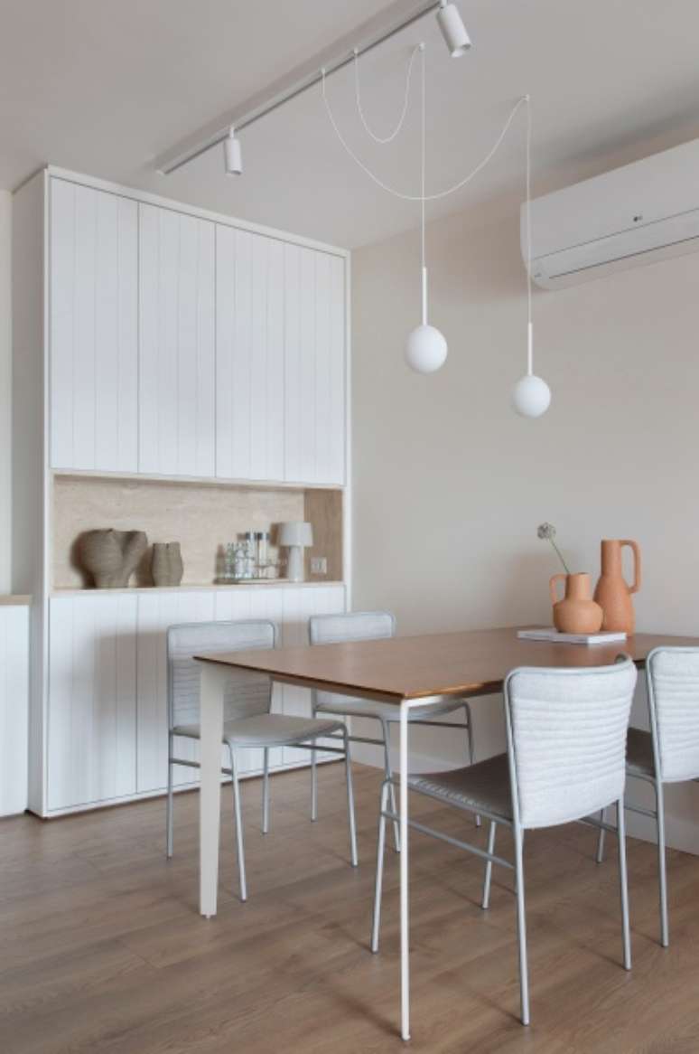 Um casal que buscava um imóvel menor encontrou esse apartamento de 65m² no Rio de Janeiro e decidiu se mudar assim que as chaves da construtora chegassem. Durante a pandemia, enquanto aguardavam o término das obras, eles decidiram encomendar um projeto ao arquiteto Fabiano Ravaglia, que foi desenvolvido e apresentado integralmente através de reuniões online.