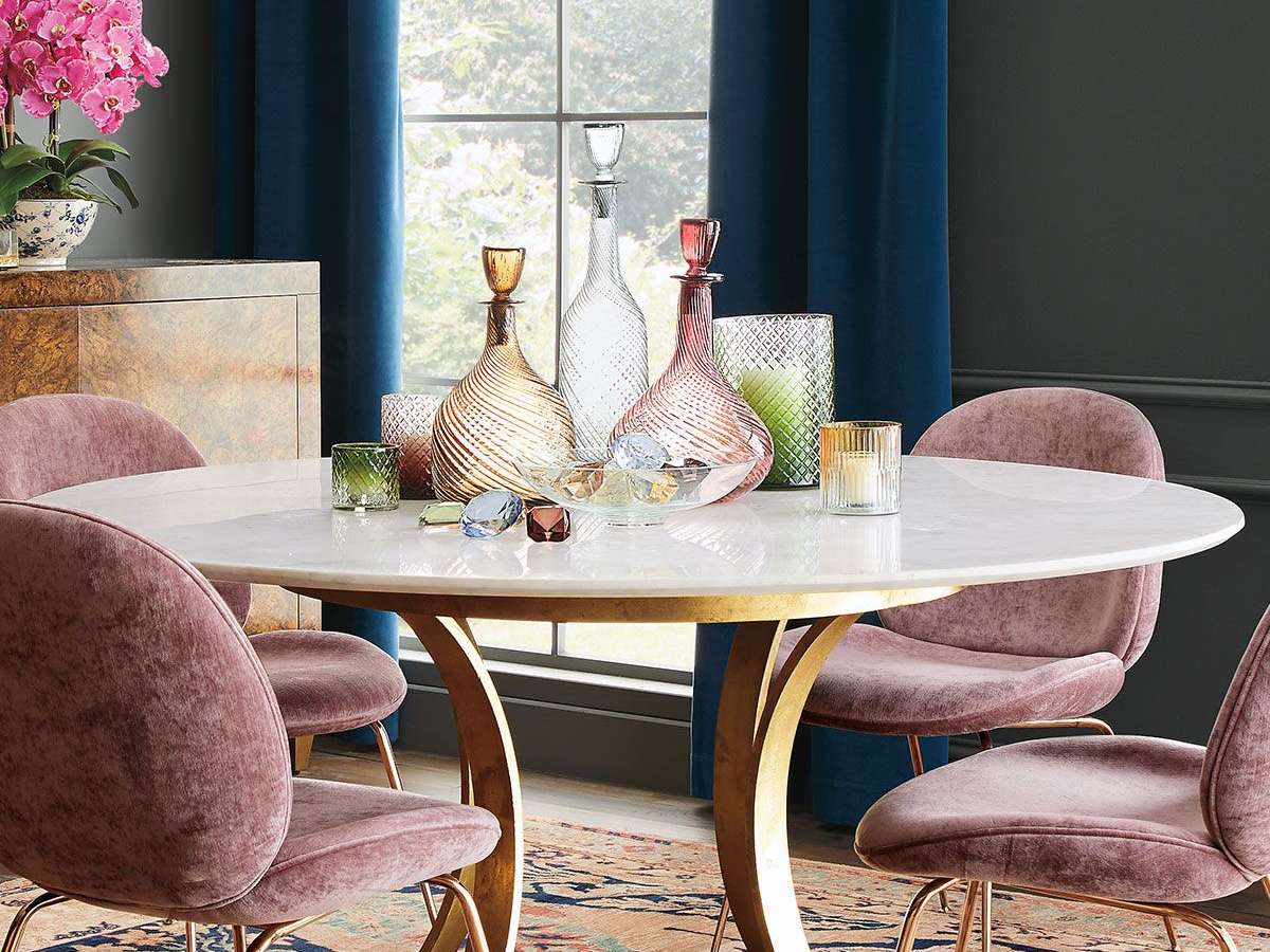 53. Mesa de jantar luxuosa com pé de ferro dourado – Foto The Decorista