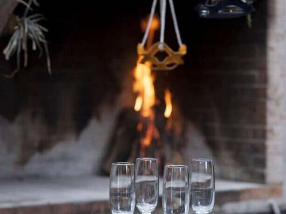 22. Mesa de frios simples decorada com pequena tábua redonda e taças de vinho – Foto: Assetproject