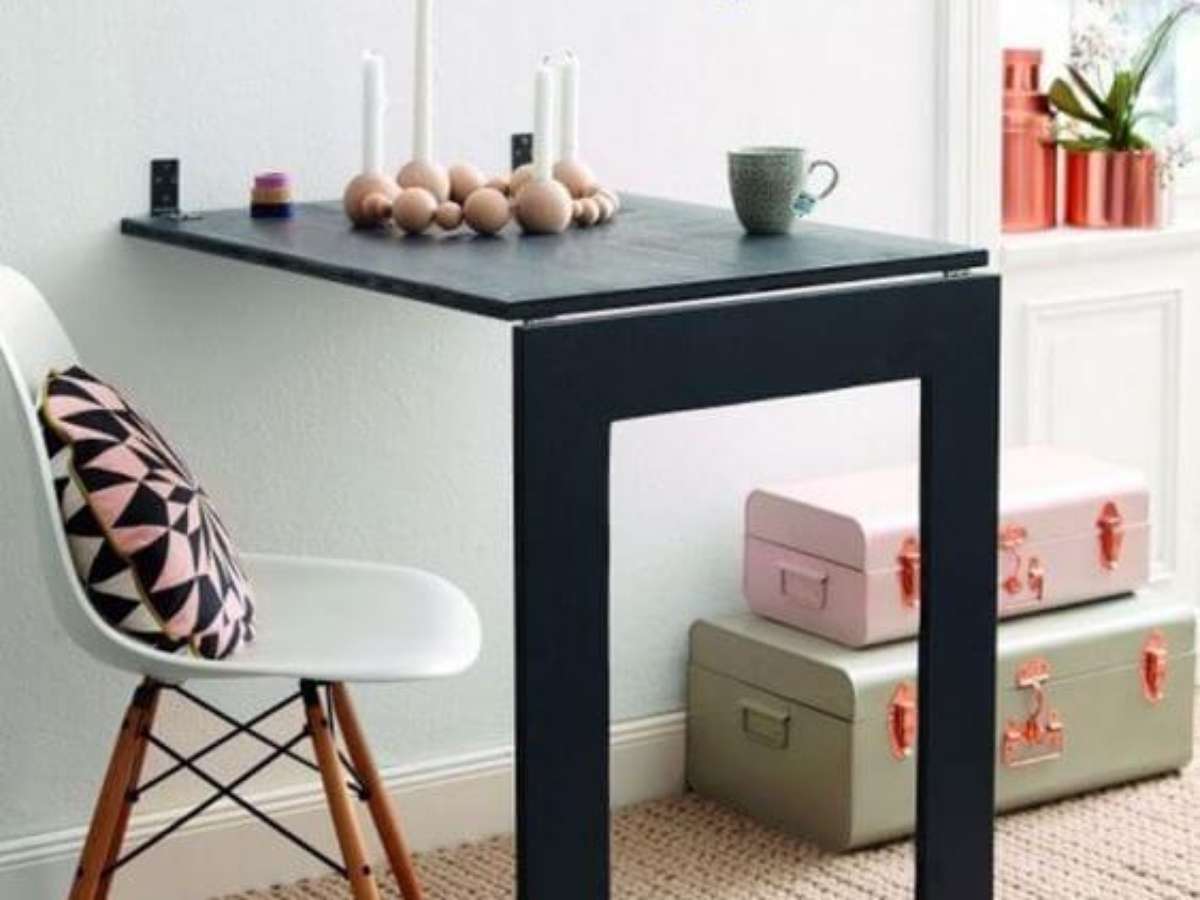 14. Mesa dobrável de parede para ambientes pequenos e bem decorados