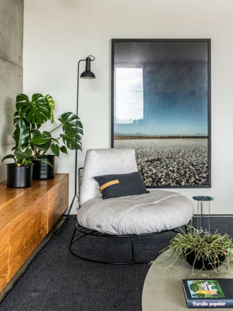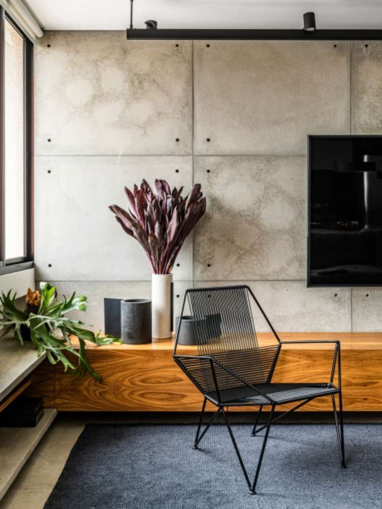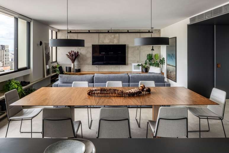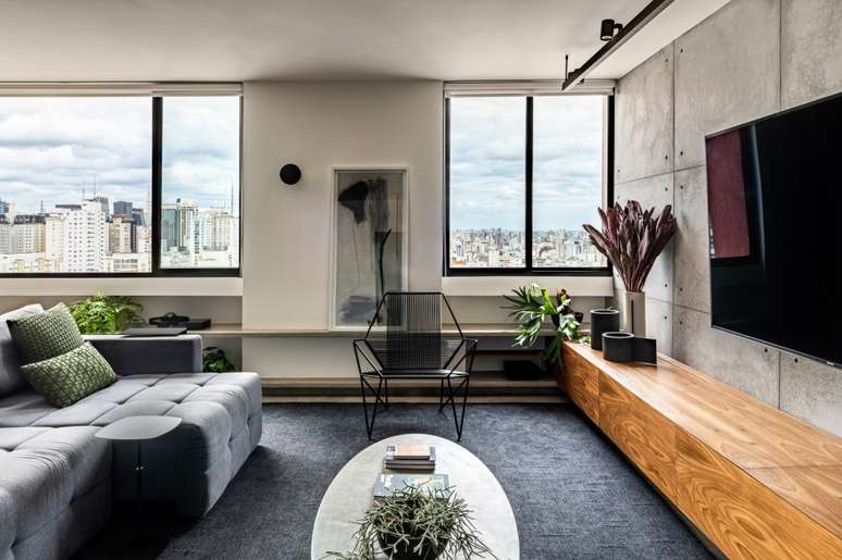 Minimalista: apê de 110m² aposta em integração, madeira e cimento queimado