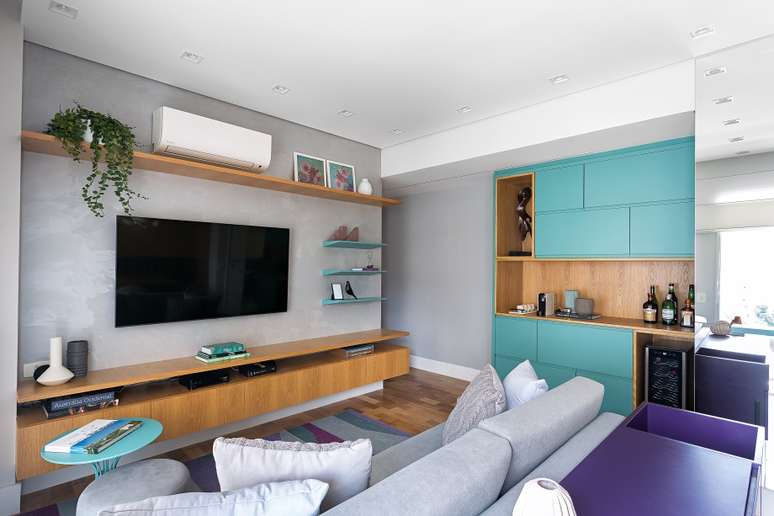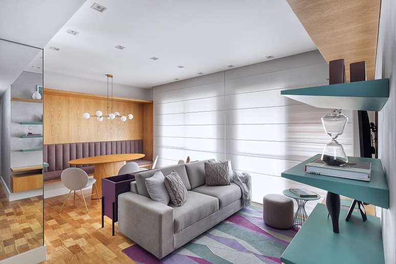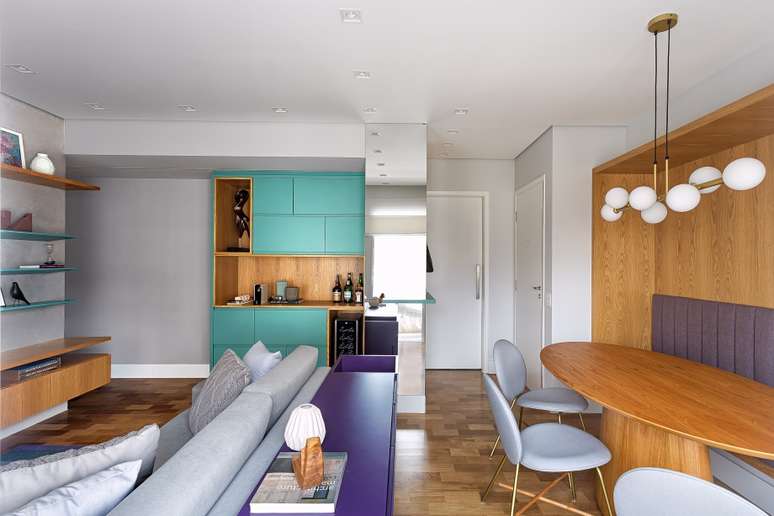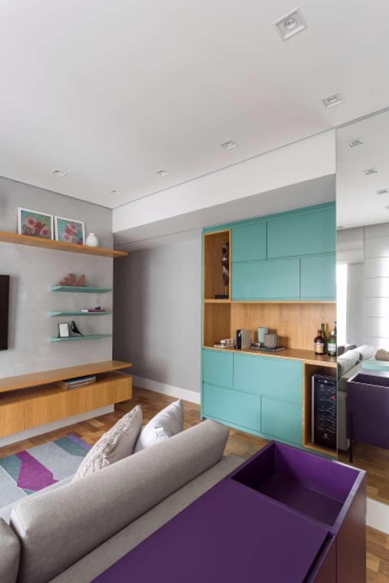 Móveis coloridos criam personalidade neste apê de 72 m²