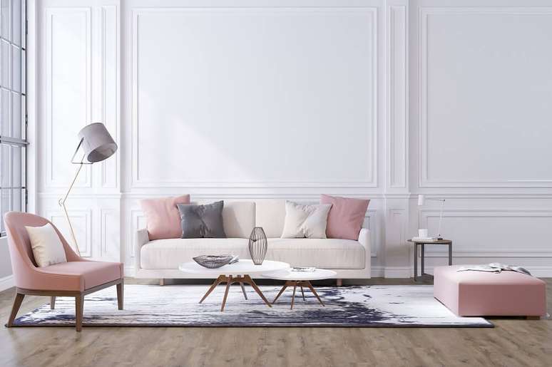 E falando em tecido, outra sugestão importante é optar por uma cor neutra para o revestimento do sofá e poltronas. Elas tendem a deixar o ambiente mais moderno e com visual mais "limpo".
