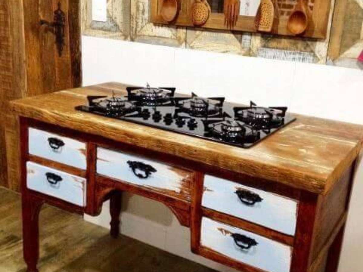 1. Os móveis usados podem ser ser usados também com itens modernos, como o cooktop. Projeto de Marta Lilianne Grucci