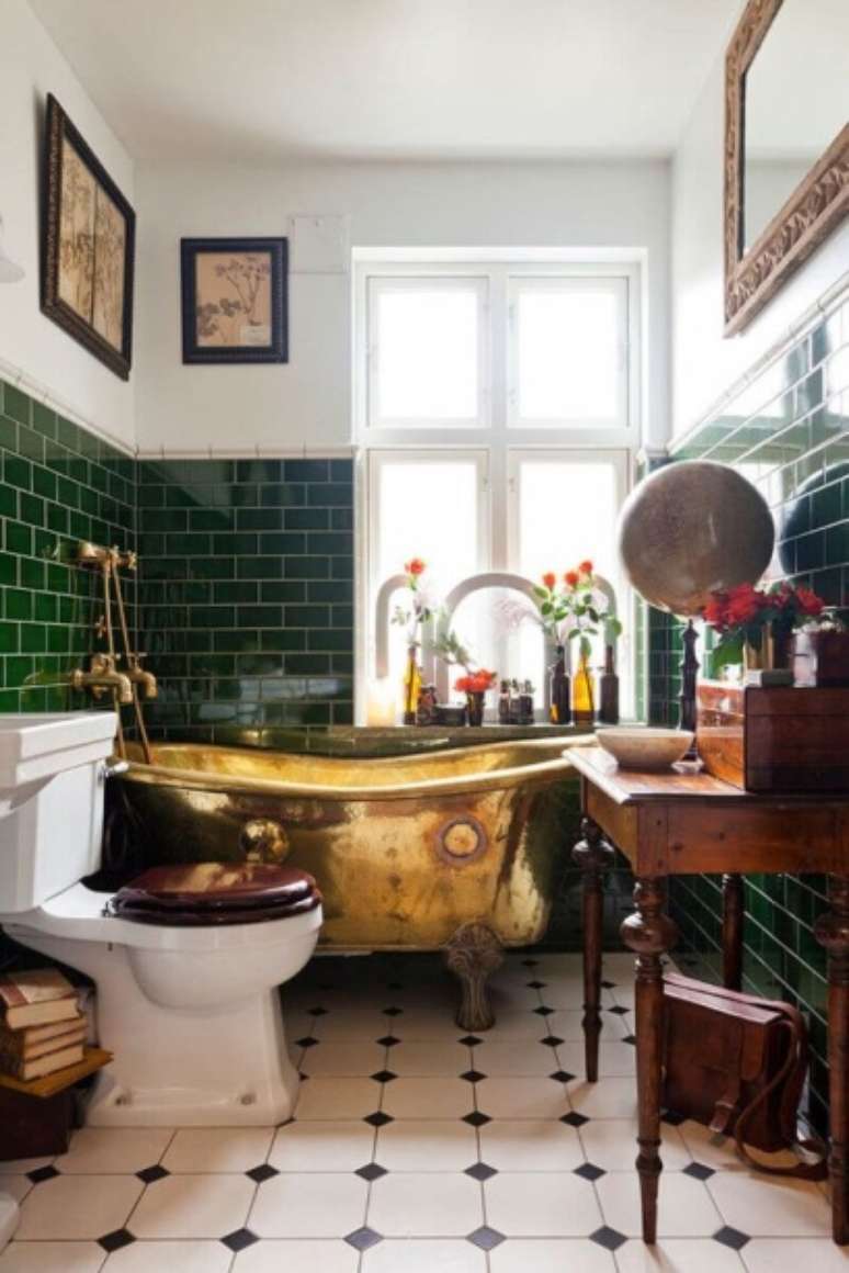 Padrões geométricos arrojados, elaborados recursos de iluminação, designs inovadores de móveis e muitos metais - especialmente dourados devem fazer parte do seu cômodo no estilo.