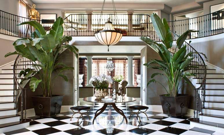Já o ouro e o latão são usados moderadamente na forma de detalhes que reforçam o tema da decoração de luxo. A clássica combinação preto e branco, porém, também está presente.