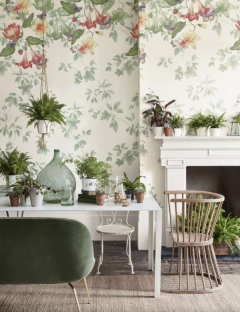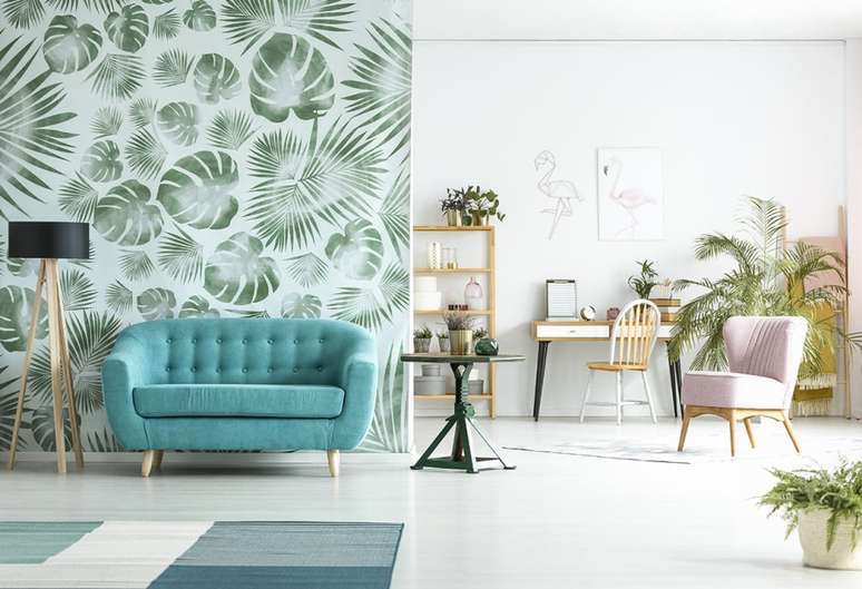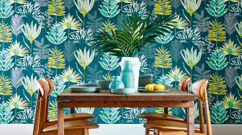 - Papéis de parede: padrões de folhagens podem mudar totalmente um ambiente com textura e expressividade;