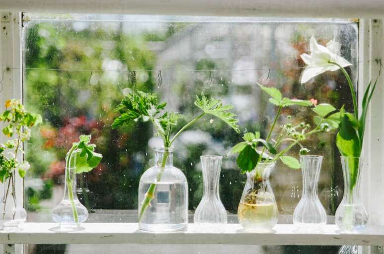 - Linha de vasos: fácil e fofa, essa disposição consiste em vasos (normalmente de um mesmo tamanho) dispostos em linha. É um ótimo jeito de aproveitar aquela janela que bate Sol;