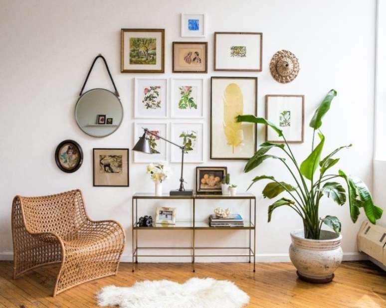 - Estampas: motivos botânicos em sofás, tapetes e almofadas alegram os móveis;