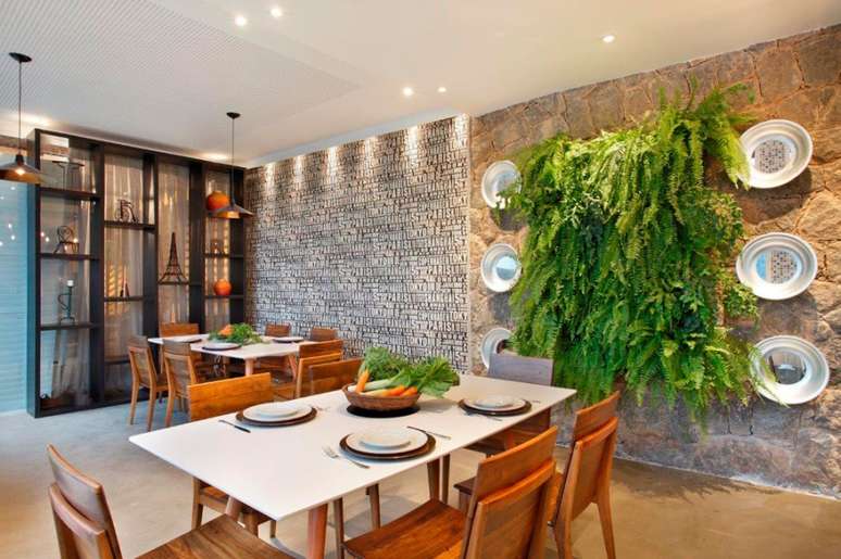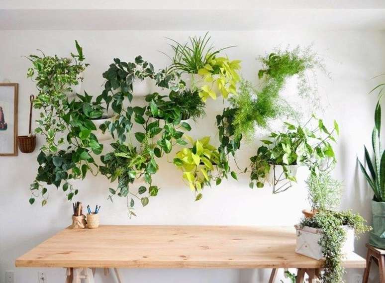 - Jardim Vertical: complexo e um pouco mais trabalhoso, o jardim vertical é um segmento ou parede inteira que é coberto por plantas. Ele precisa de estrutura e manejo adequados, mas é perfeito para quem já ama jardins e tem experiência nos cuidados.