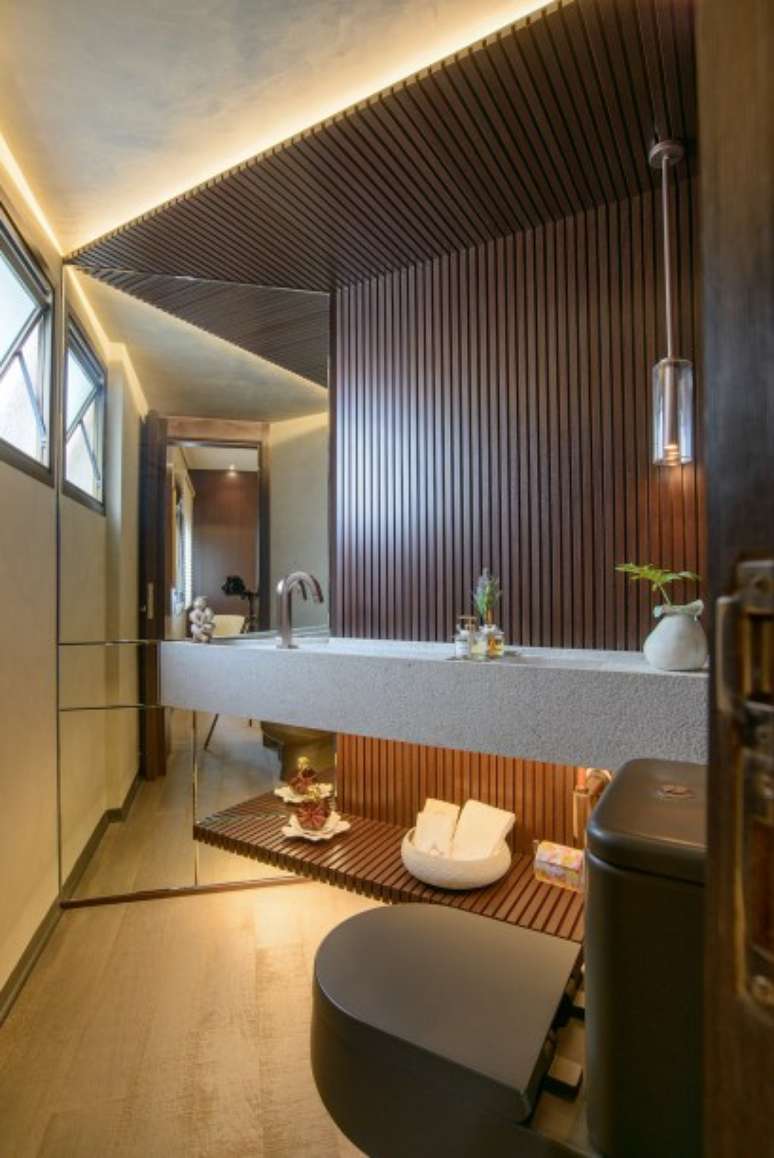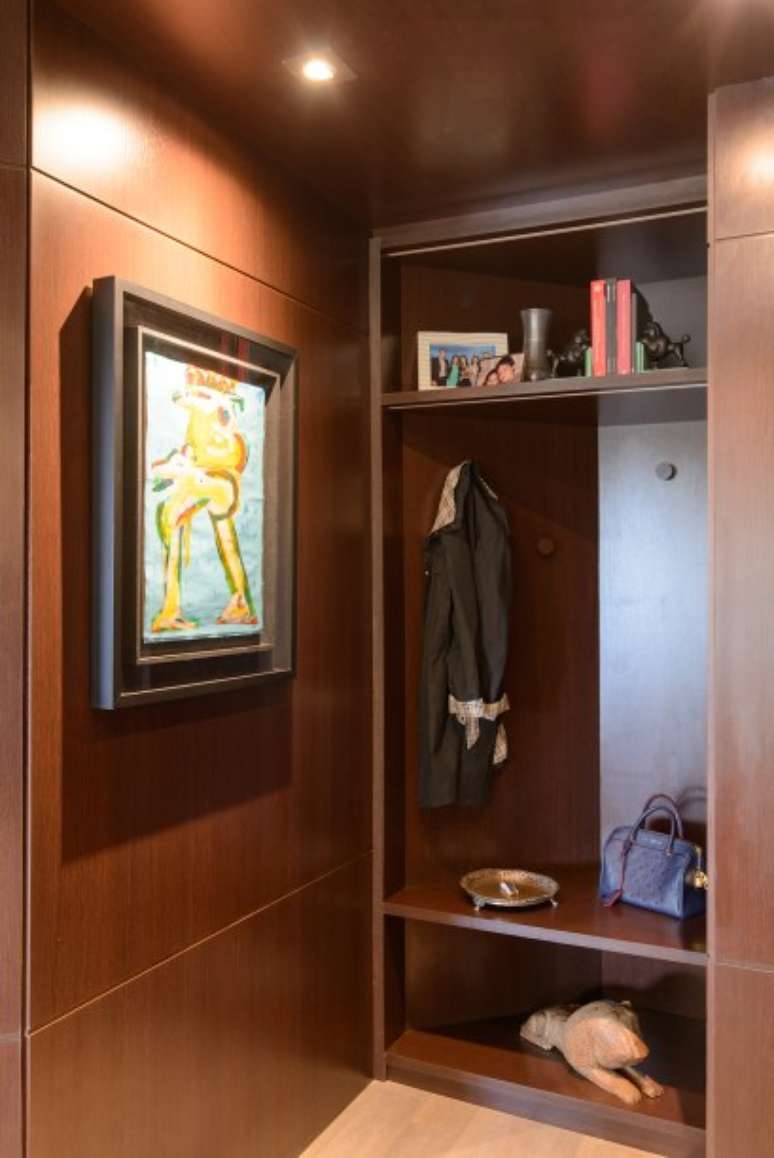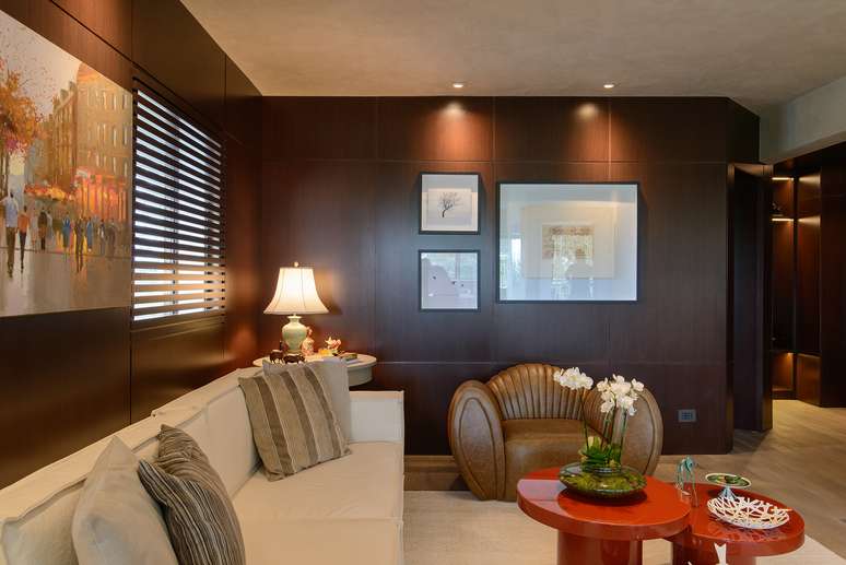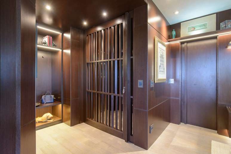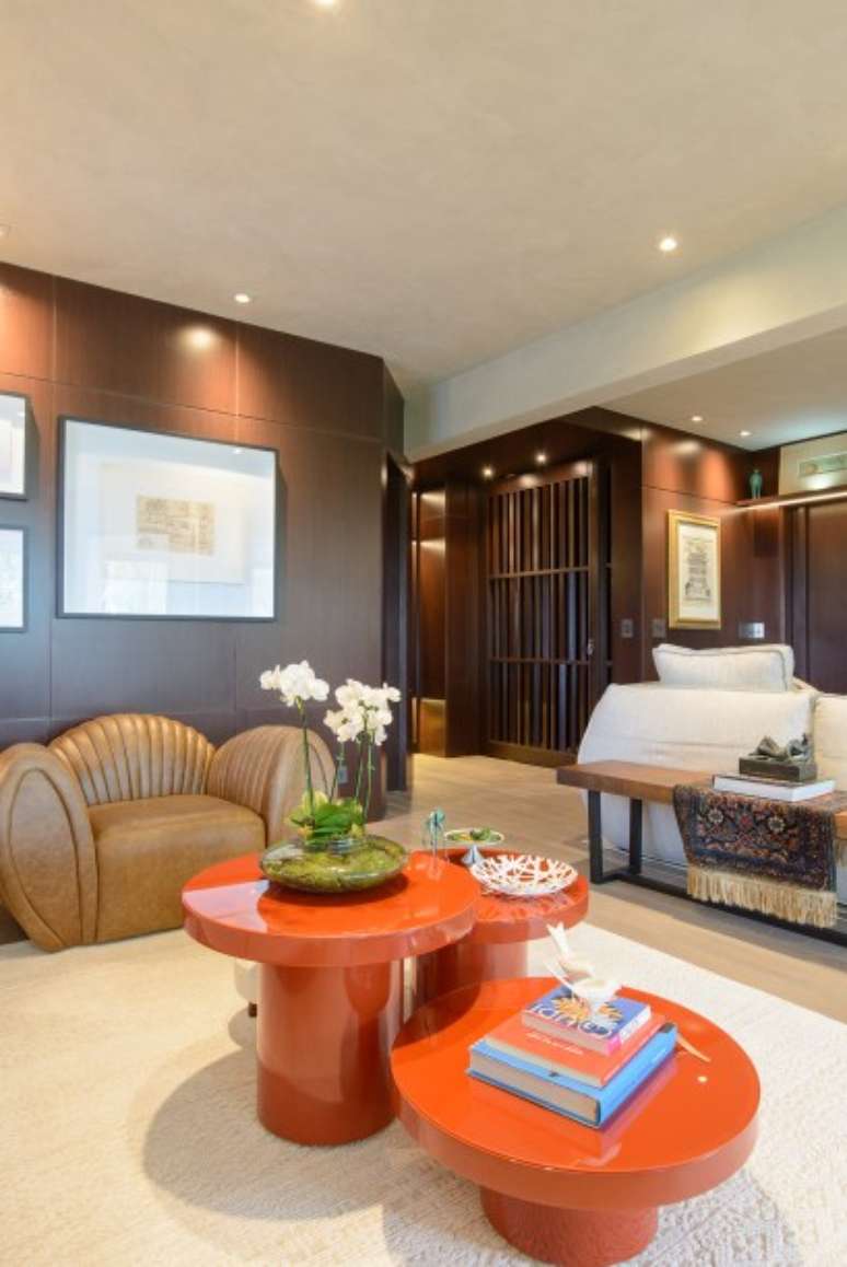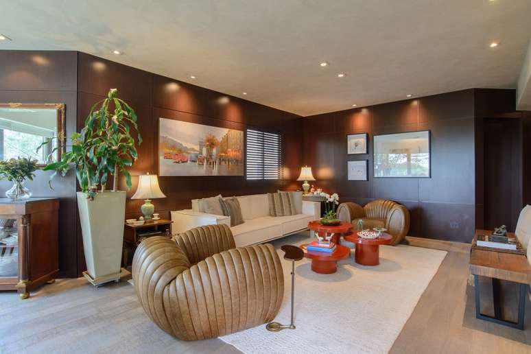 Painéis de madeira escura caracterizam o projeto deste apê de 250 m²