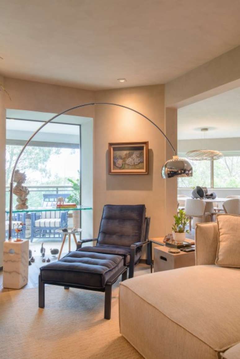 Todo o antigo mobiliário foi substituído por novas peças que traduzem os desejos dos moradores, como a poltrona Shell, design por Estudiobola, que trouxe conforto e personalidade para o ambiente.