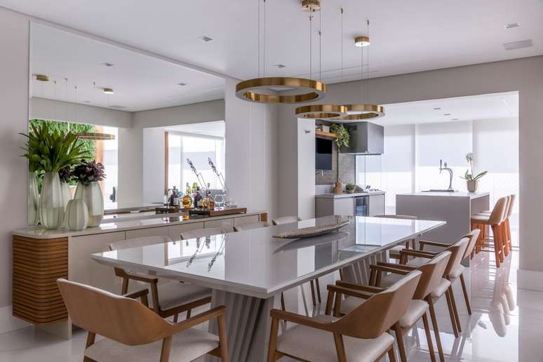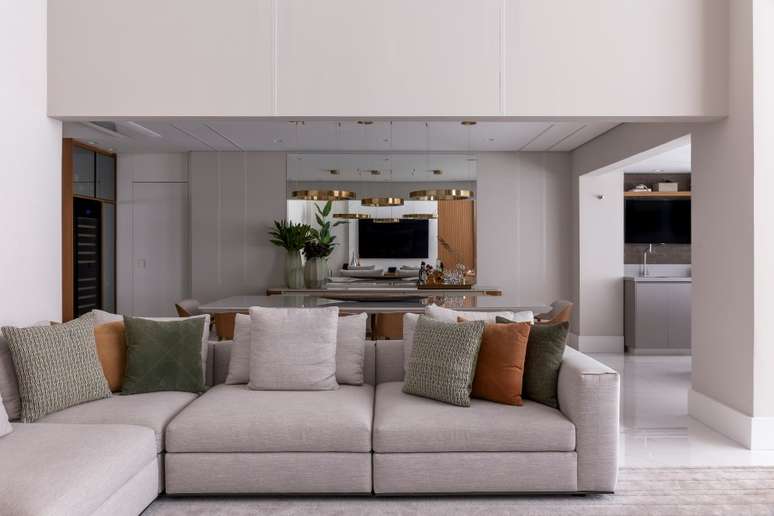 A arquiteta Marta Martins, que assina o projeto, criou ambientes integrados com paleta de cores clara e revestimentos cerâmicos