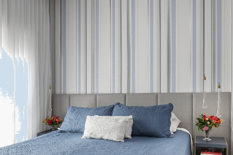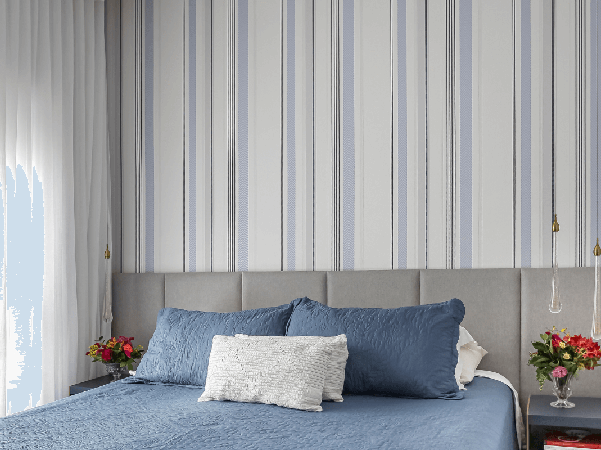 As listras são uma escolha clássica que nunca perde força na decoração. Além de imprimirem movimento e dinamismo às paredes, elas têm o poder de influenciar a percepção de proporção dos ambientes — quando aplicadas na vertical, ajudam a alongar o pé-direito; na horizontal, ampliam a sensação de largura.