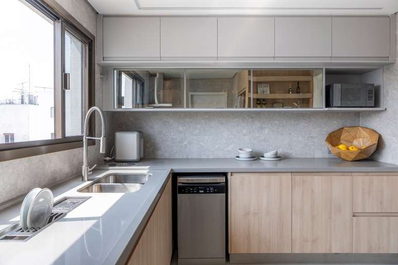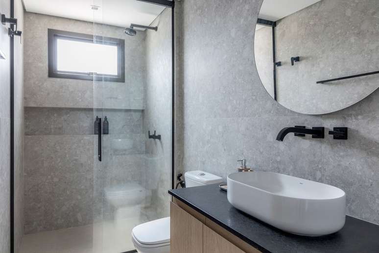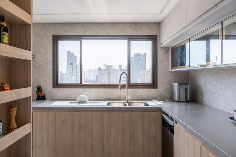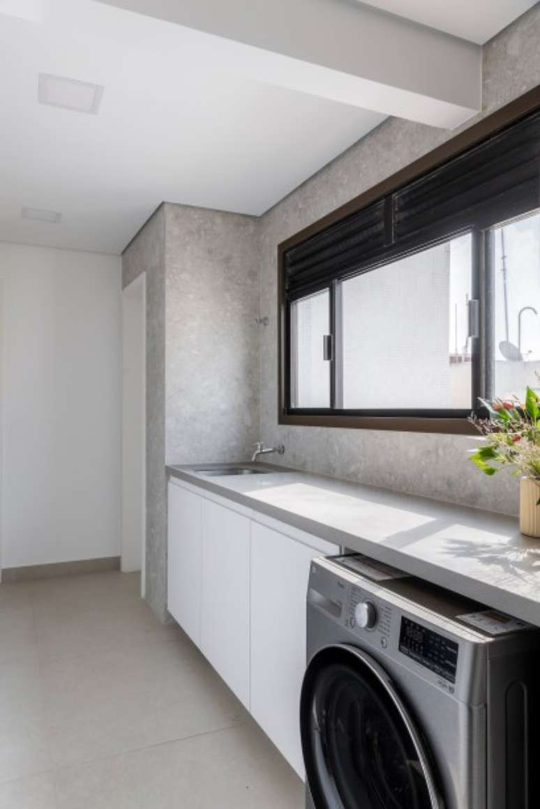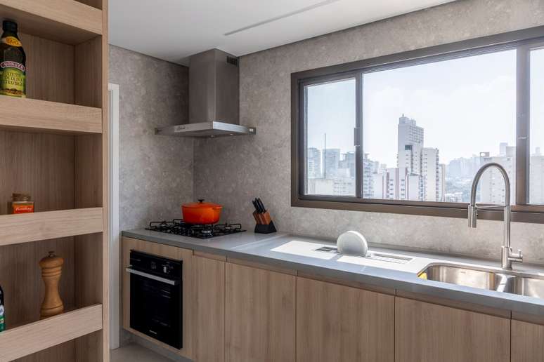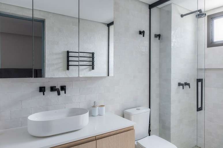 "Fizemos uma reforma total: troca de hidráulica, elétrica, contrapiso, derrubamos paredes e revestimos todas as áreas molhadas", contam os profissionais. Entre os desafios encontrados no decorrer da obra, pontos estruturais como vigas e pilares foram descobertos e o layout sofreu algumas alterações.