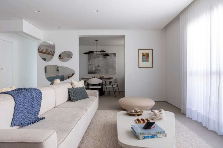 Assinado pelo escritório Next Arquitetos, este apartamento de 153 m² foi pensado para um casal jovem, que desejava um lar clean e funcional, com uma paleta de cores baseada no preto, branco e cinza - que ganhou um toque de azul no decorrer do projeto.