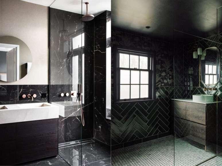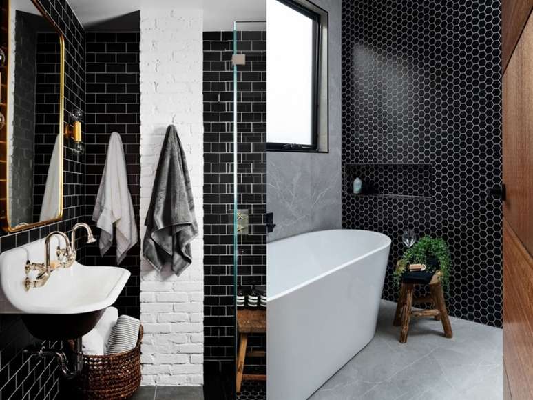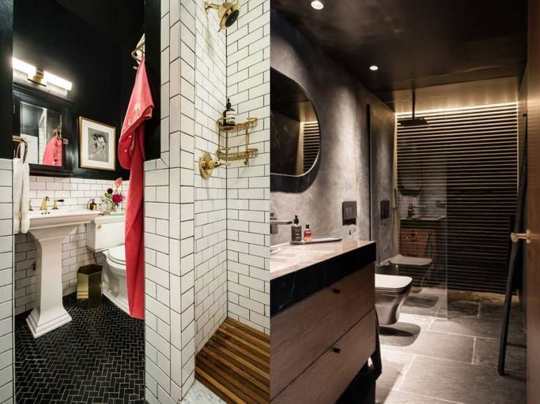 Esta seleção de projetos mostrará uma variedade de banheiros pretos, em que a paleta escura é incorporada de muitas maneiras. E você verá que um banheiro assim é atemporal, elegante e o perfeito para sua casa.