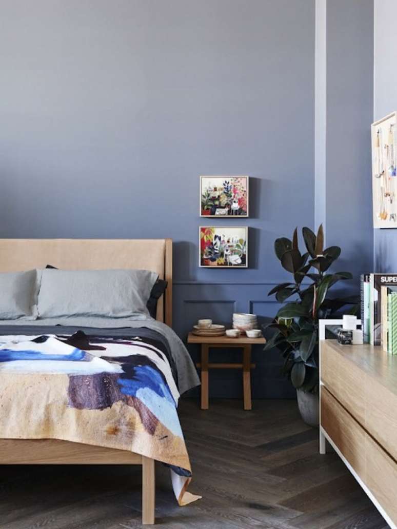 16. Quarto clássico com parede ombre em tons de azul – Foto Historias de Casa