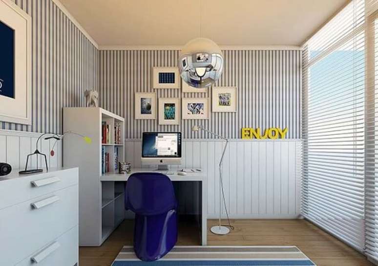 46- As persianas para quarto horizontal complementam a decoração em estilo jovem e descontraído. Fonte: Pinterest