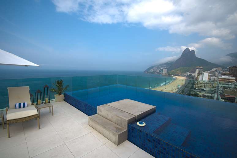 Nesta cobertura, localizada na capital paulista, o arquiteto Davi Bastos optou por borda infinita