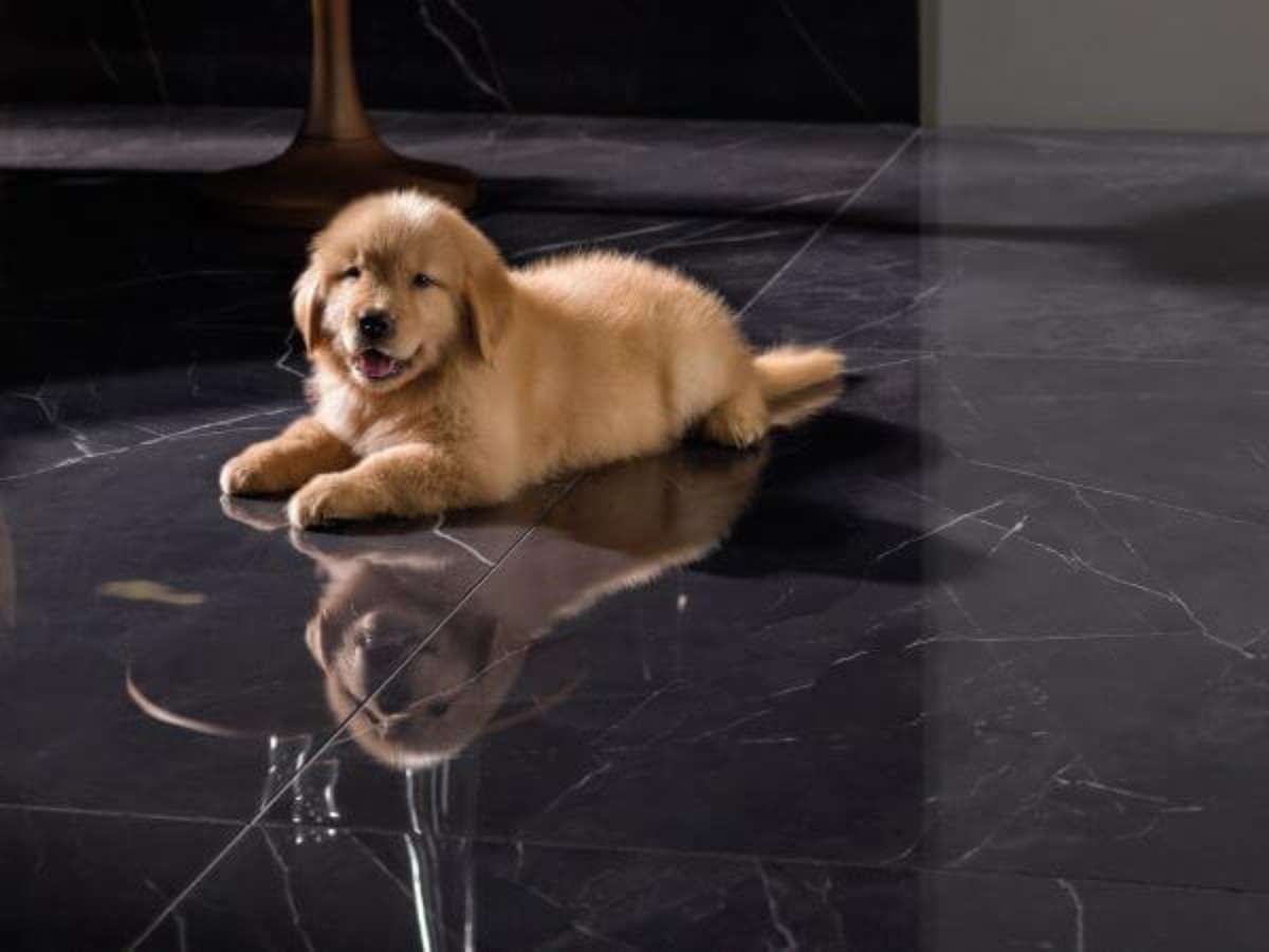 1. Piso de porcelanato preto polido e marmorizado para sala de estar elegante – Foto Portobello