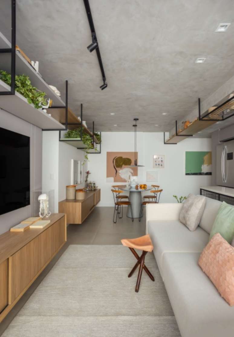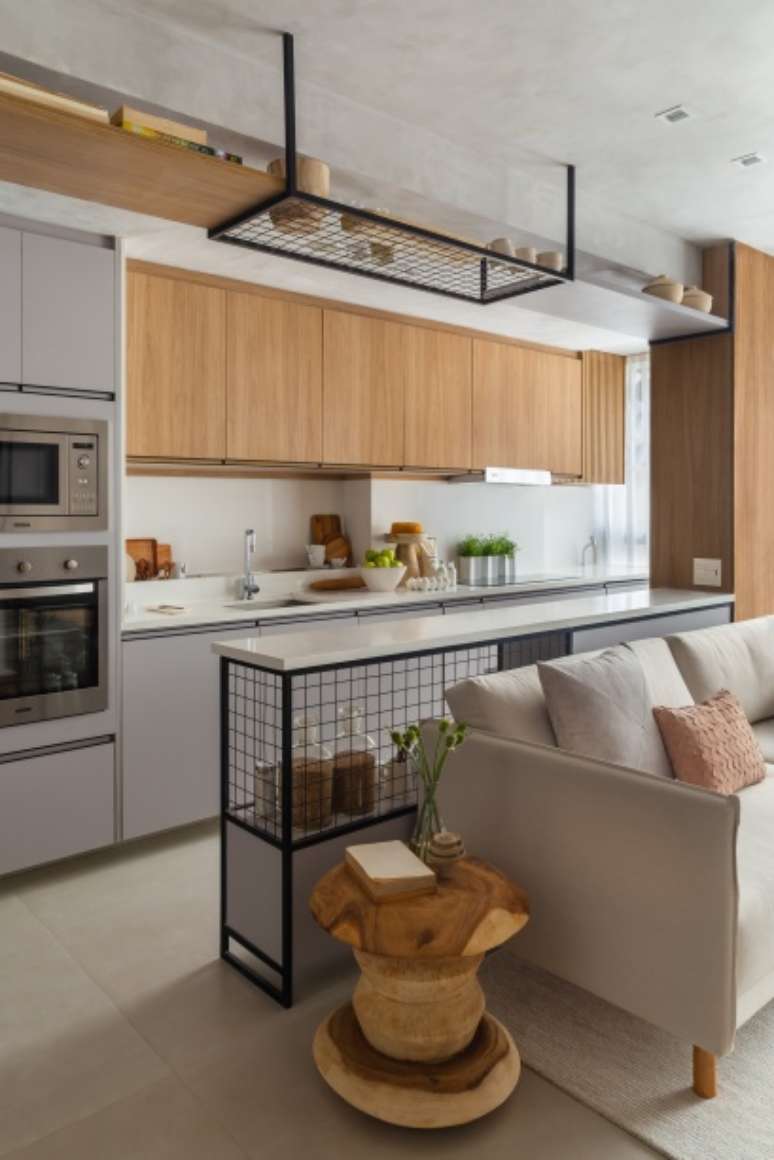 No geral, o projeto aposta na integração dos espaços, décor com base de tons predominantemente neutros de cinza e off white e marcenarias desenhadas pelo próprio escritório, sob medida para cada cômodo.
