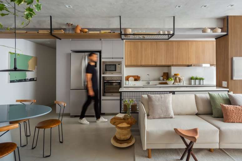 Segundo o arquiteto, o novo projeto interviu bastante na planta original proposta pela construtora. As paredes que separavam a sala, a cozinha e a varanda, por exemplo, foram demolidas para integrar os três ambientes.