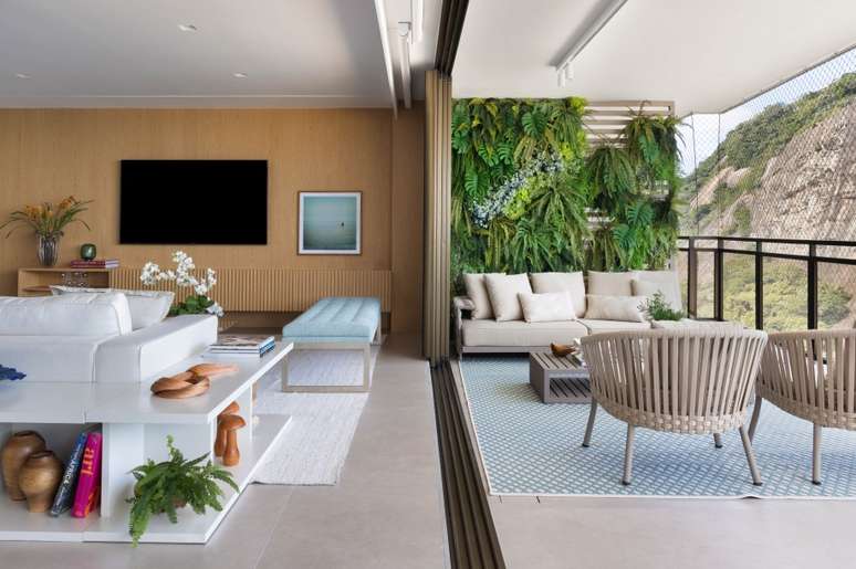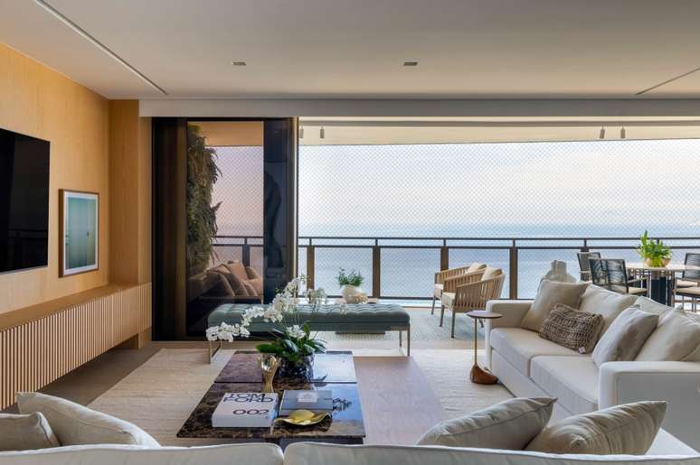 "Agora, é possível deixar totalmente livre o vão entre a área social e a varanda, debruçada sobre o mar", ressalta Geize.