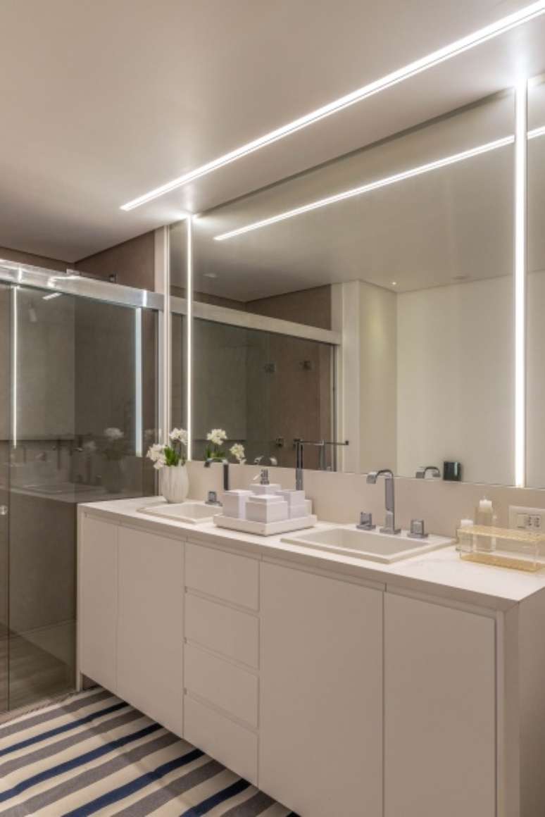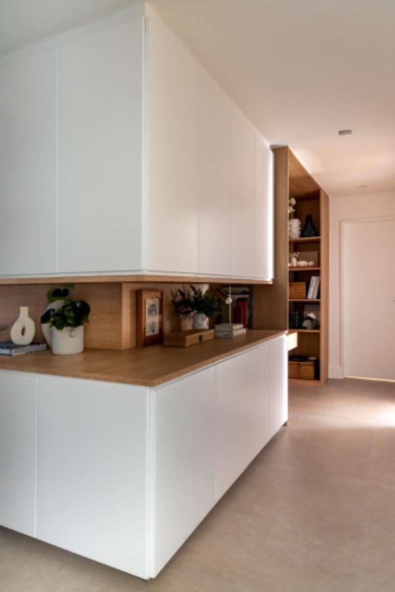 "Era importante que os dois filhos tivessem banheiro no quarto, e não apenas um, como na planta original", informa Alessandra. Para criar o espaço da copa solicitado pelos moradores e ampliar ainda mais a cozinha, o antigo louceiro e a despensa também foram redimensionados.