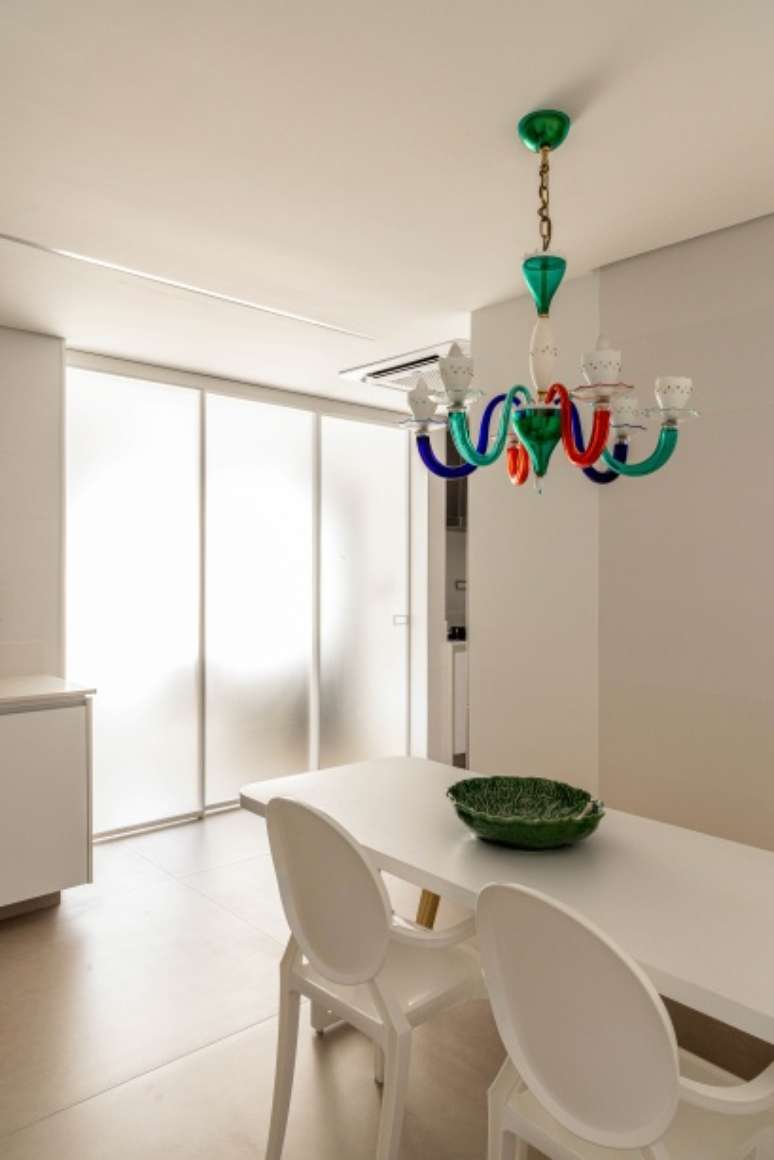 Na decoração, é tudo novo, com exceção do lustre pendente de Murano (que hoje está na copa) e a mesa de centro do wine space (com base de mármore maciço e tampo de vidro), que já faziam parte do acervo dos clientes e foram aproveitados.