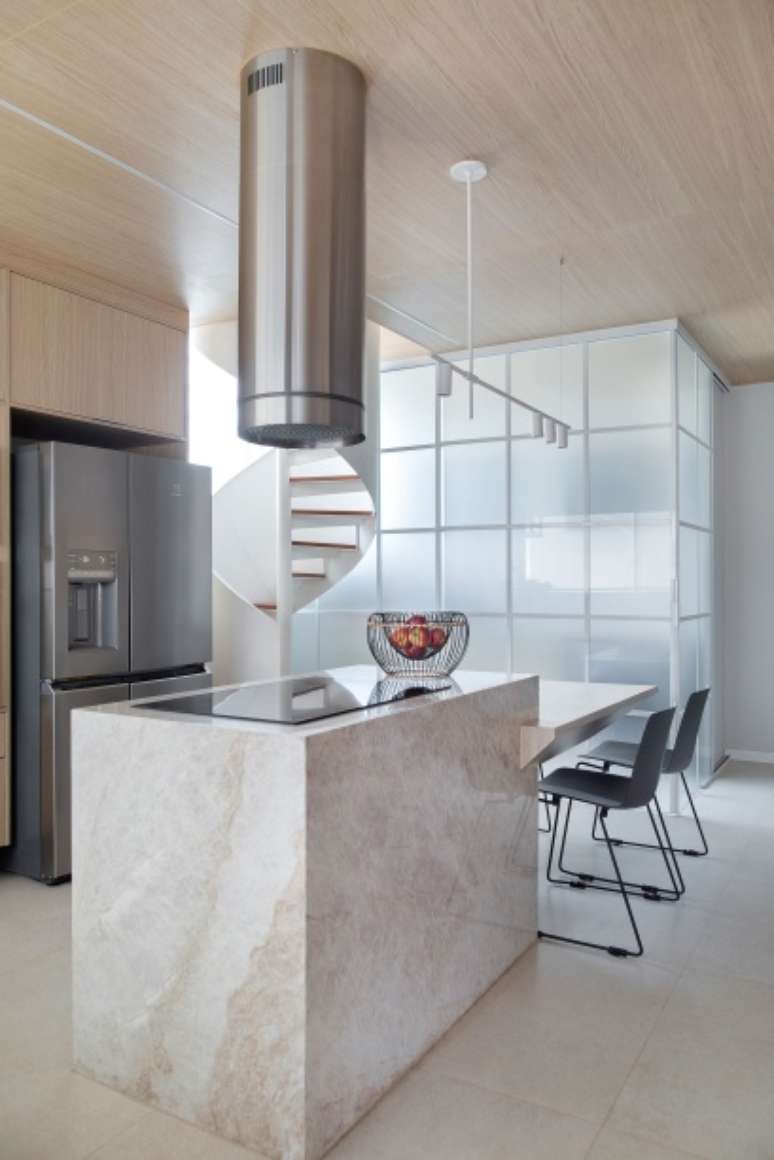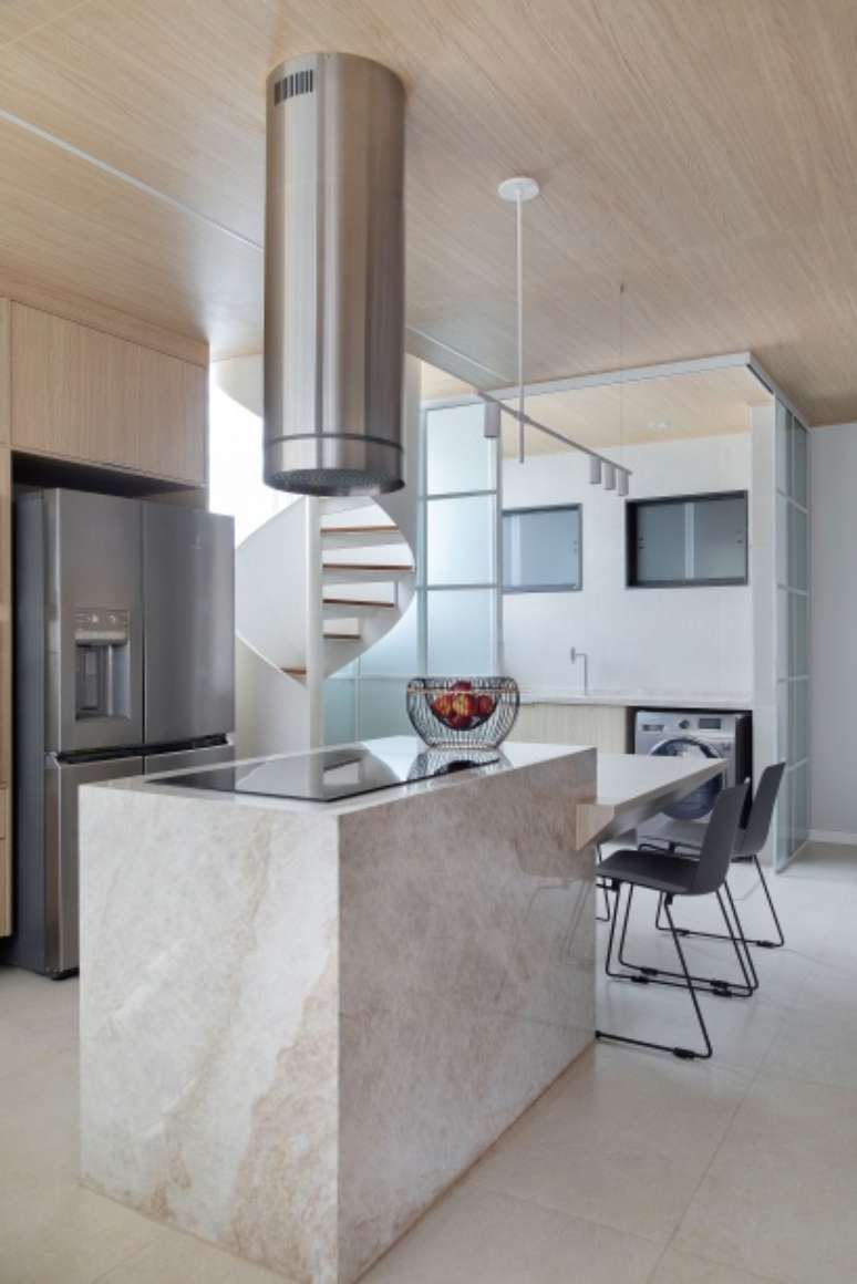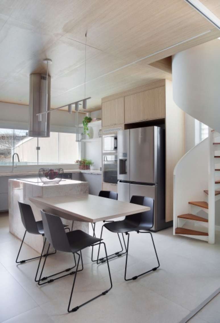 Apenas a escada helicoidal que interliga os dois pavimentos foi mantida, mas ganhou nova roupagem, tornando-se um importante elemento arquitetônico no espaço. "Também adicionamos um lavabo que não existia na sala", ressalta o arquiteto Cadé.