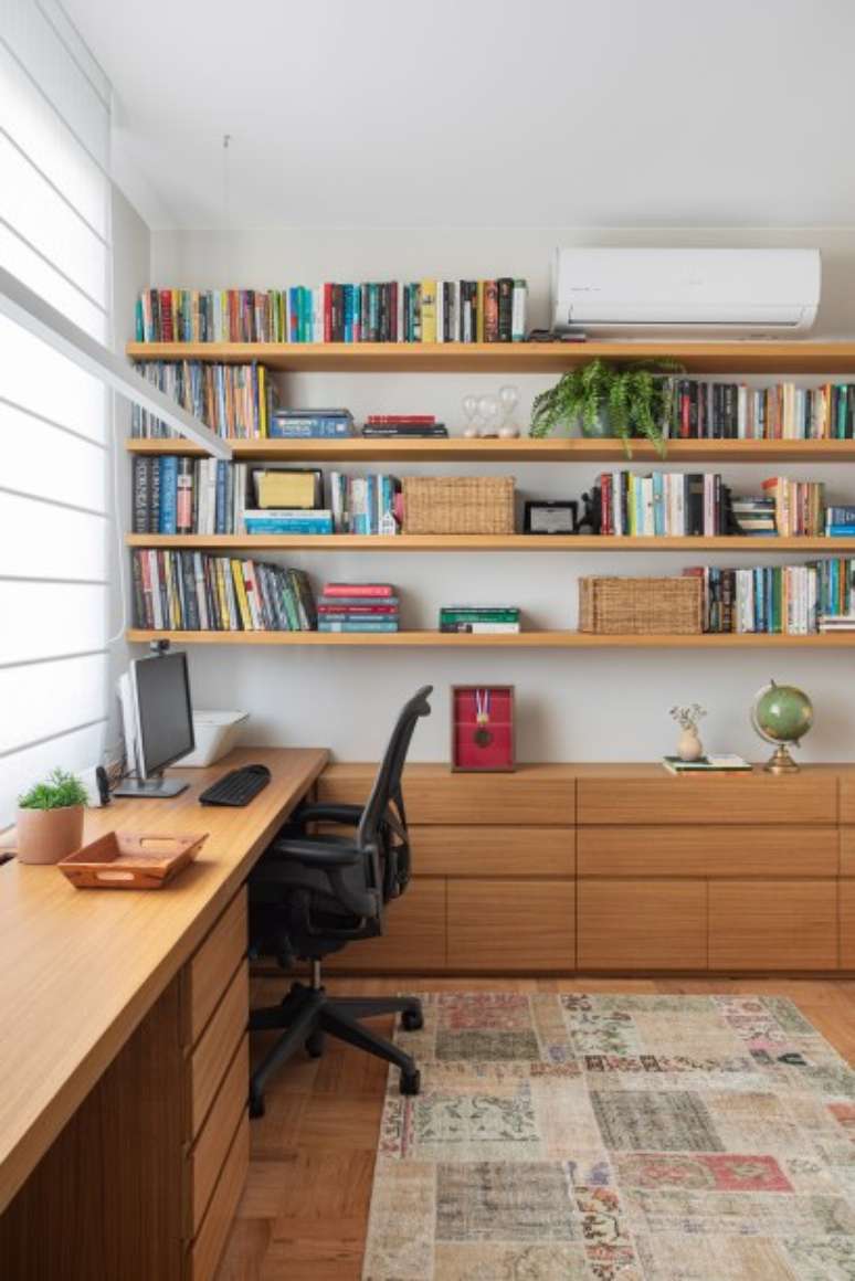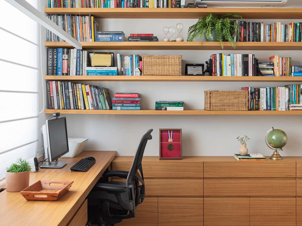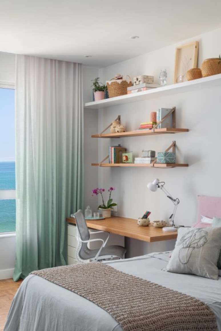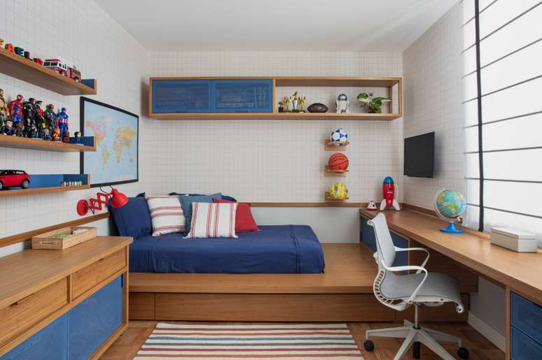 O escritório Escala Arquitetura criou uma suíte para cada um dos filhos dos moradores e um home office que funciona como quarto de hóspedes.