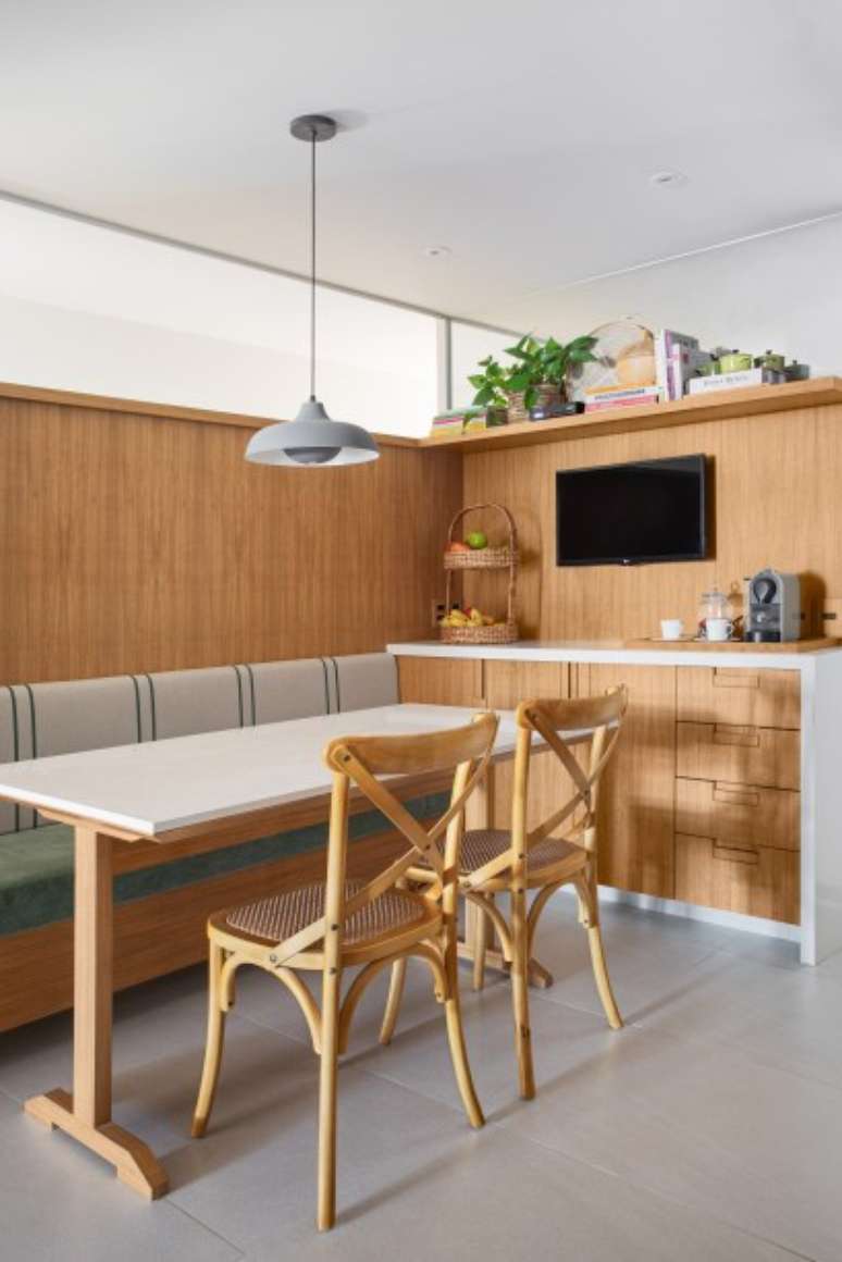 No quesito "materiais", o piso original em peroba do campo foi restaurado e a mesma madeira foi usada no acabamento das marcenarias, personalizadas pela Lasca, "braço" do escritório destinado a este segmento.