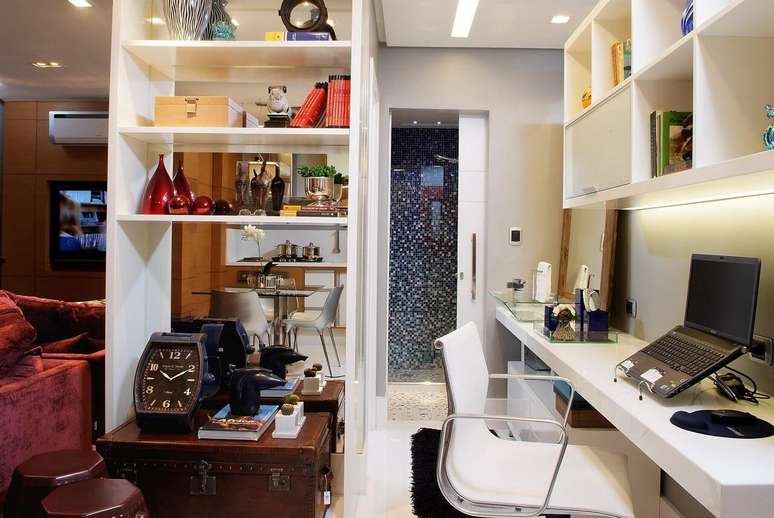O escritório não é o quartinho da bagunça, não importa o que sua preguiça disser numa sexta-feira à tarde. Mesa cheia de papéis, cadernos, canetas etc. não só desestimulam como distraem e atrapalham o trabalho. Por isso, invista em nichos (prateleiras e estantes também servem). Assim, as coisas ficam à mão sem que estejam jogadas.