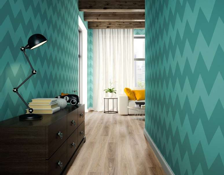 Por exemplo: ao escolher um piso vinílico que imita madeira clara (e o inverso vale quando ele é escuro), você pode aplicar nas paredes uma cor mais escura na pintura ou até um acabamento mais diferenciado, como o cimento queimado.