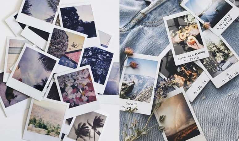 Se quiser um visual mais vintage, aposte nos modelos polaroids, em que você pode escrever uma data ou uma mensagem na imagem. Para fazer esse tipo de fotografia em casa, basta deixar uma margem maior embaixo na hora de recortar. Com certeza elas vão dar um charme a mais.