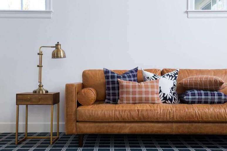 7. Também é possível usar tons escuros no sofá para sala pequena
