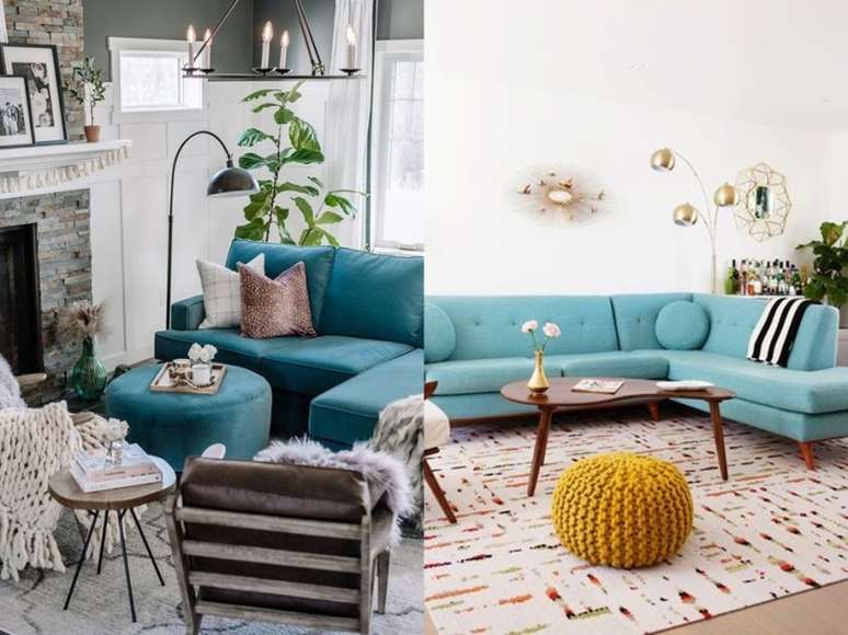 Quais estilos de decoração podem incluir um sofá turquesa?