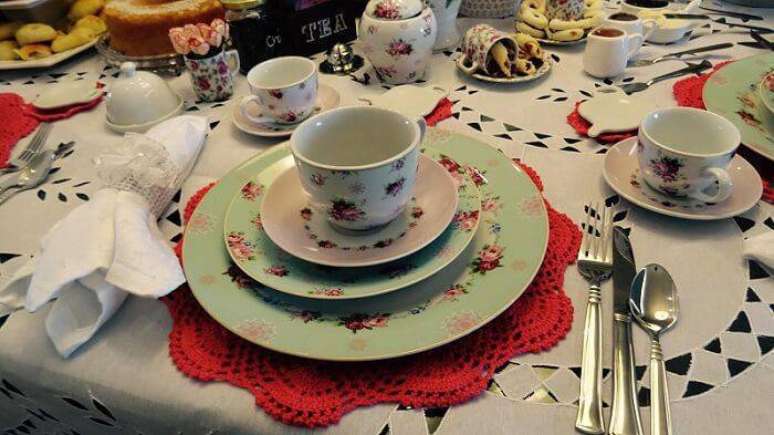 1. O sousplat de crochê traz detalhes incríveis para a mesa de café da tarde.