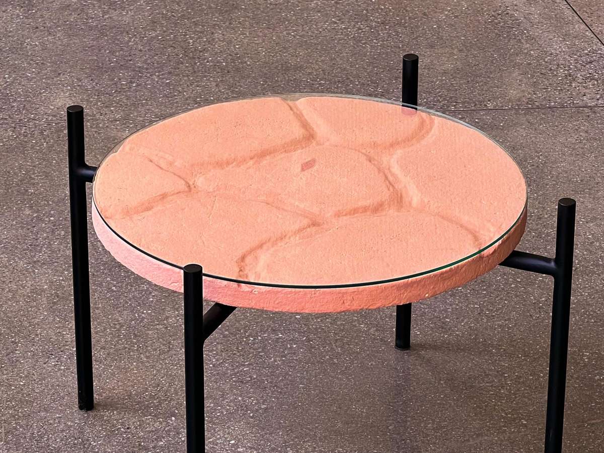 A mesa carrega o significado da origem da matéria-prima que também vem da terra: o micélio é a parte vegetativa dos cogumelos, um material biotecnológico feito a partir dos resíduos da agroindústria. É também um produto resistente, biodegradável e totalmente circular que, quando descartado, volta à natureza promovendo o crescimento de novas plantas.